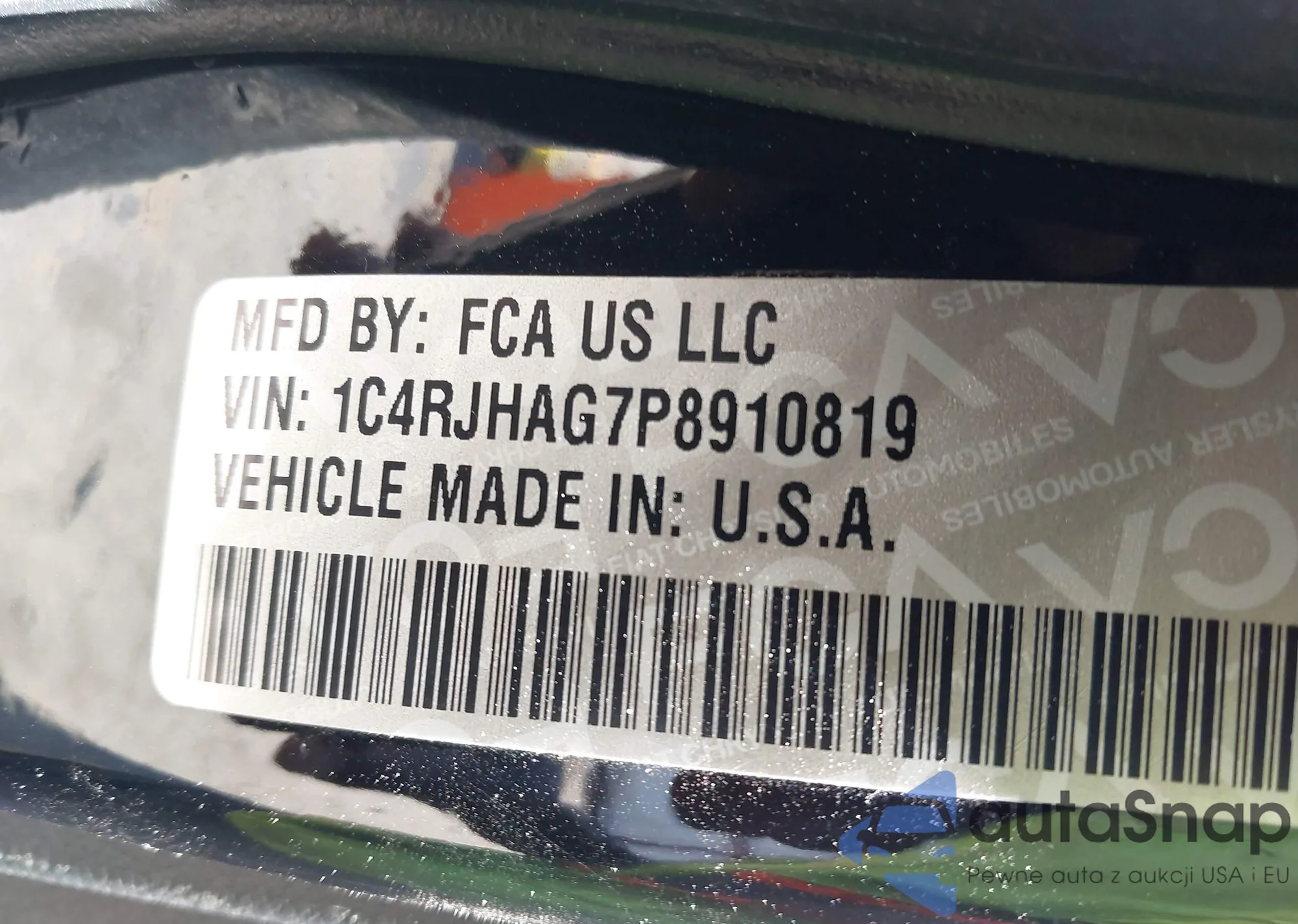 • VIN 1C4RJHAG7P8910819