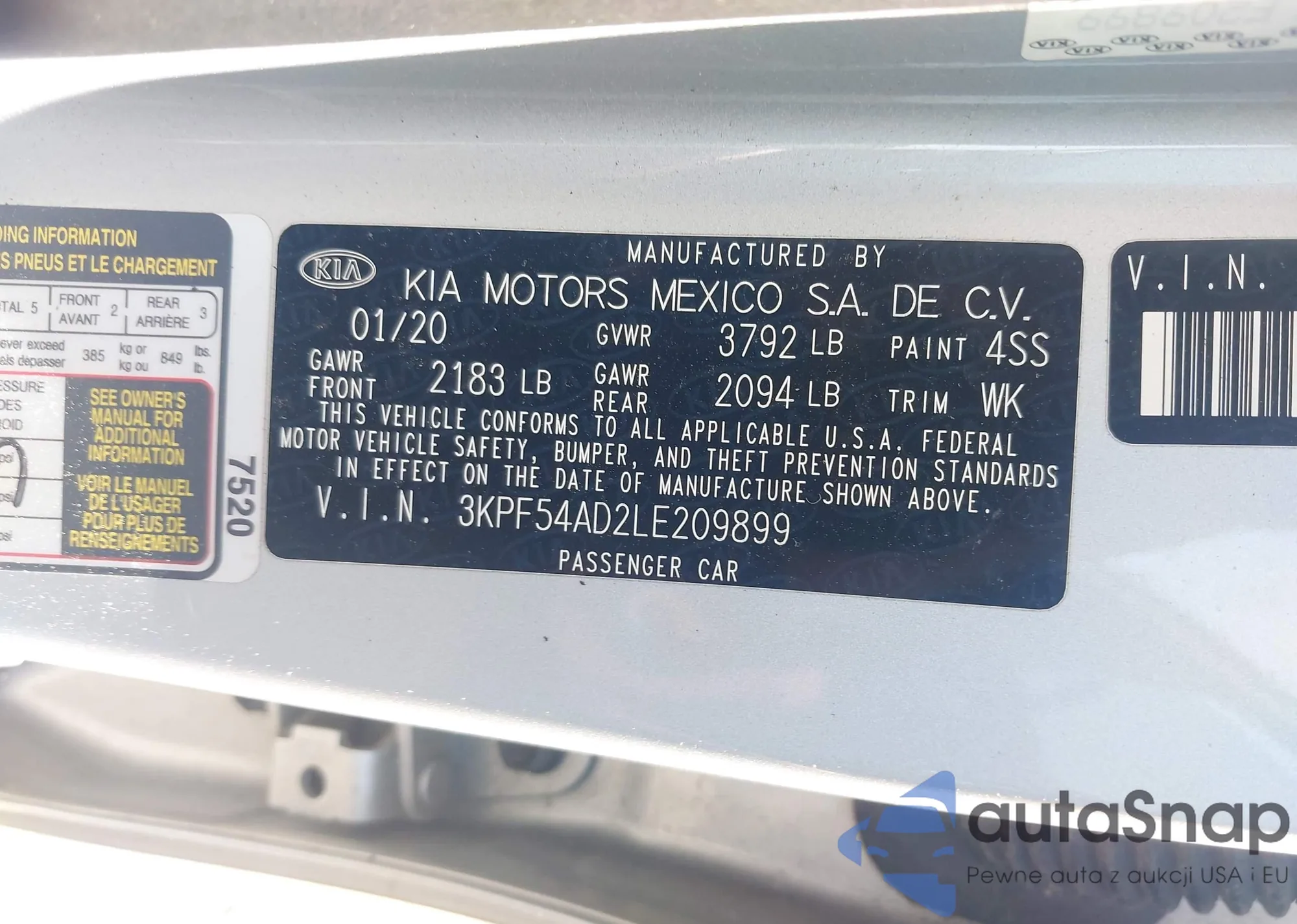 LOT: 42054729 VIN: KM8HACAB8SU215831