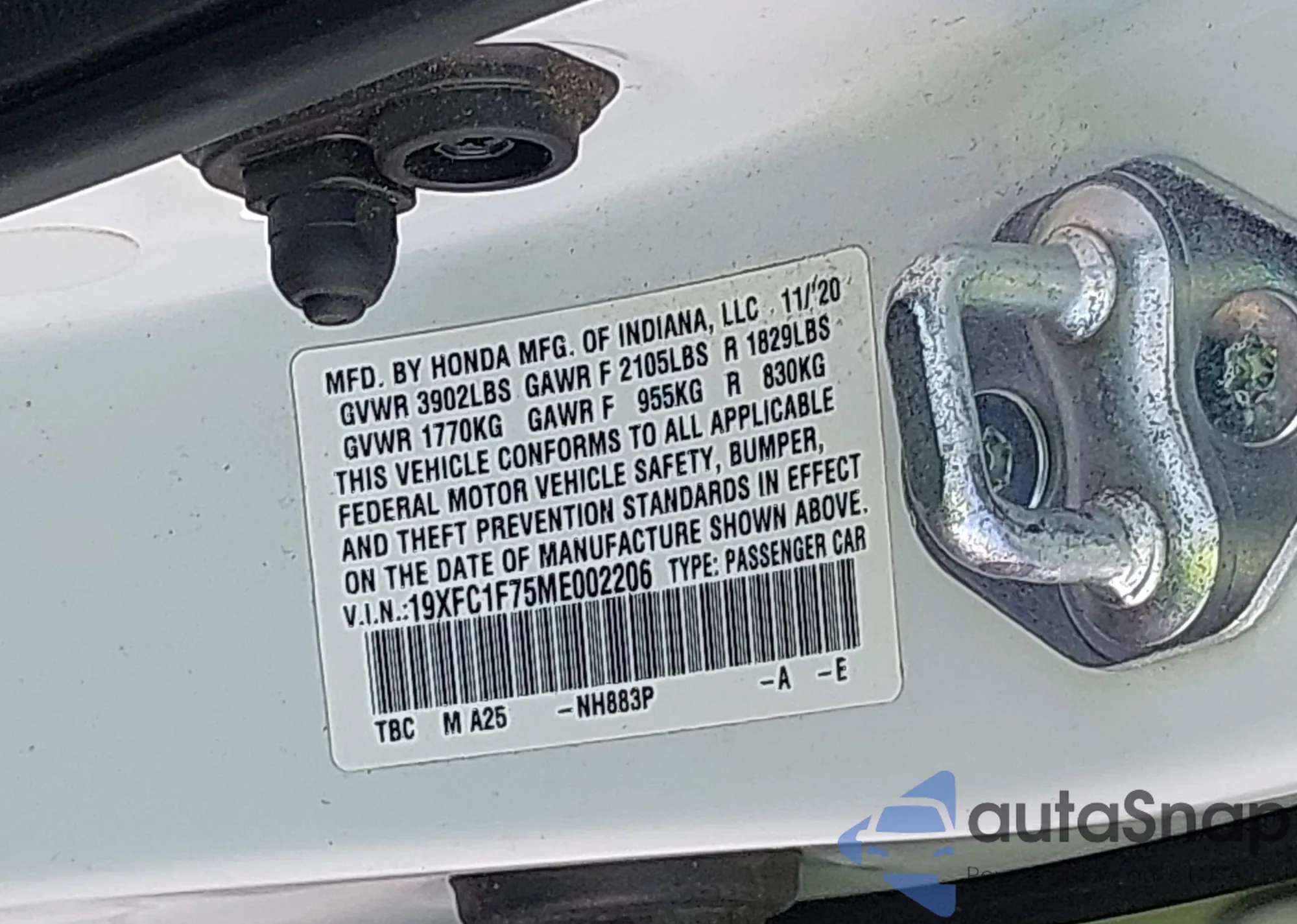 • VIN 19XFC1F75ME002206