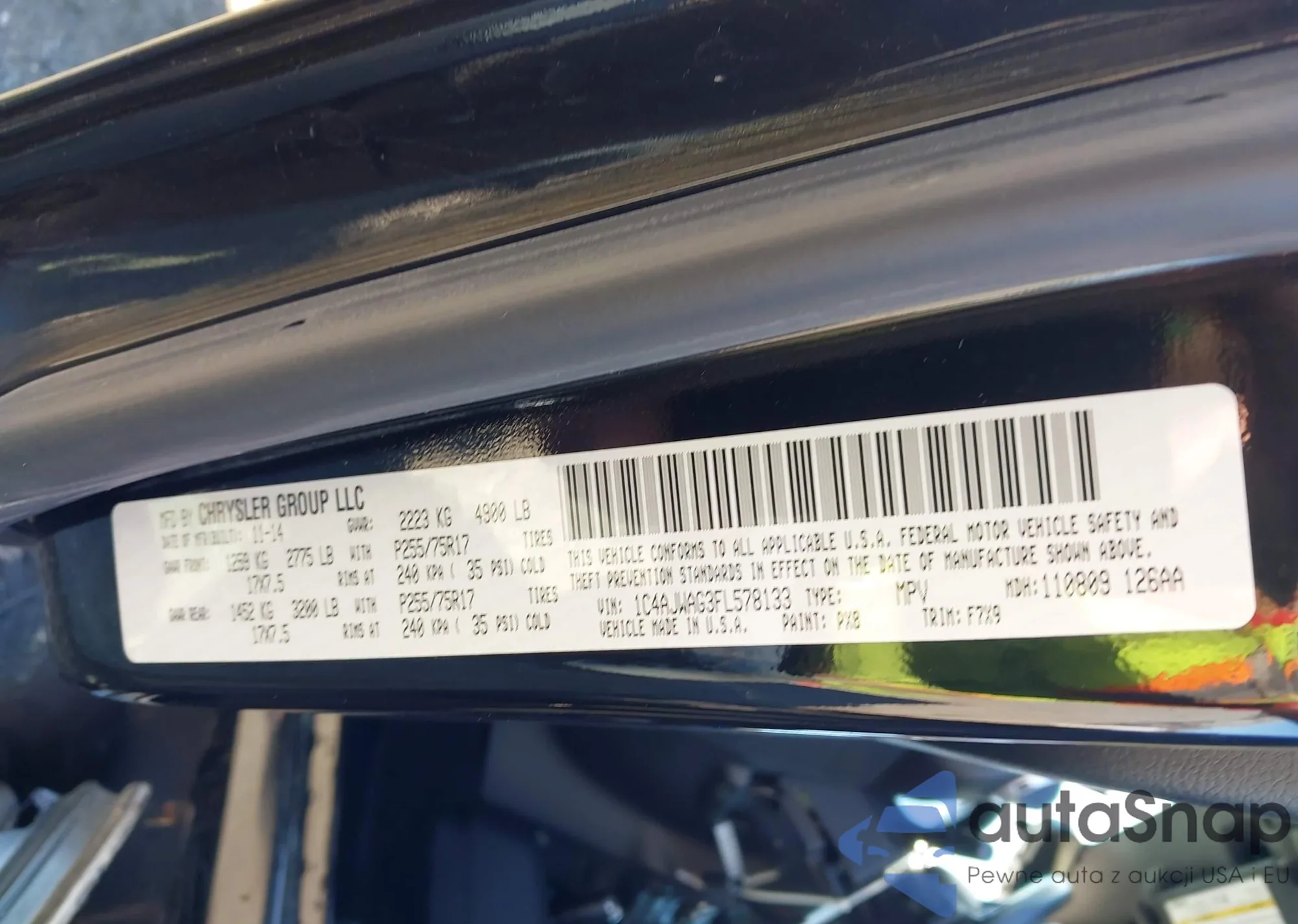 • VIN 1C4AJWAG3FL578133