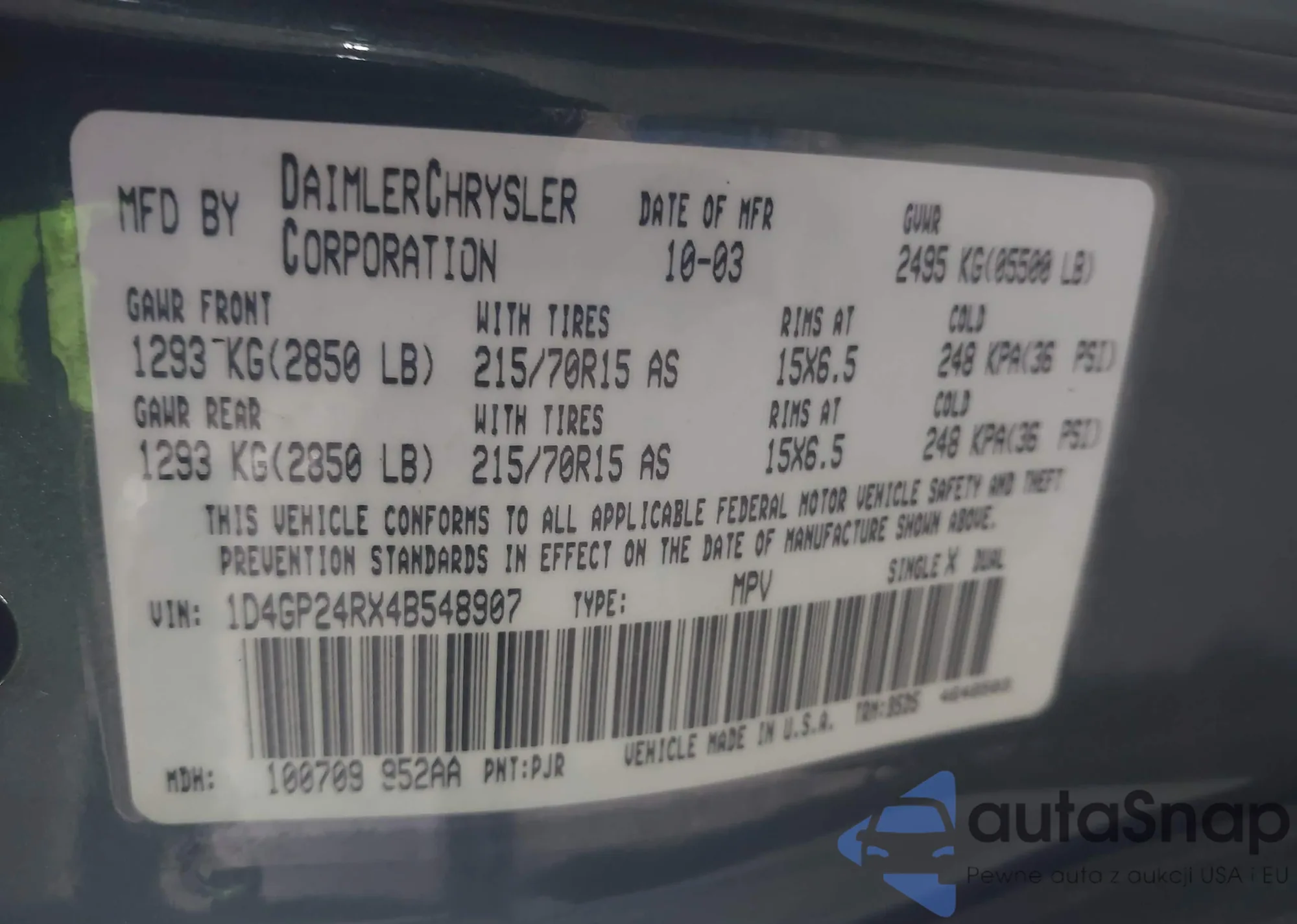• VIN 1D4GP24RX4B548907