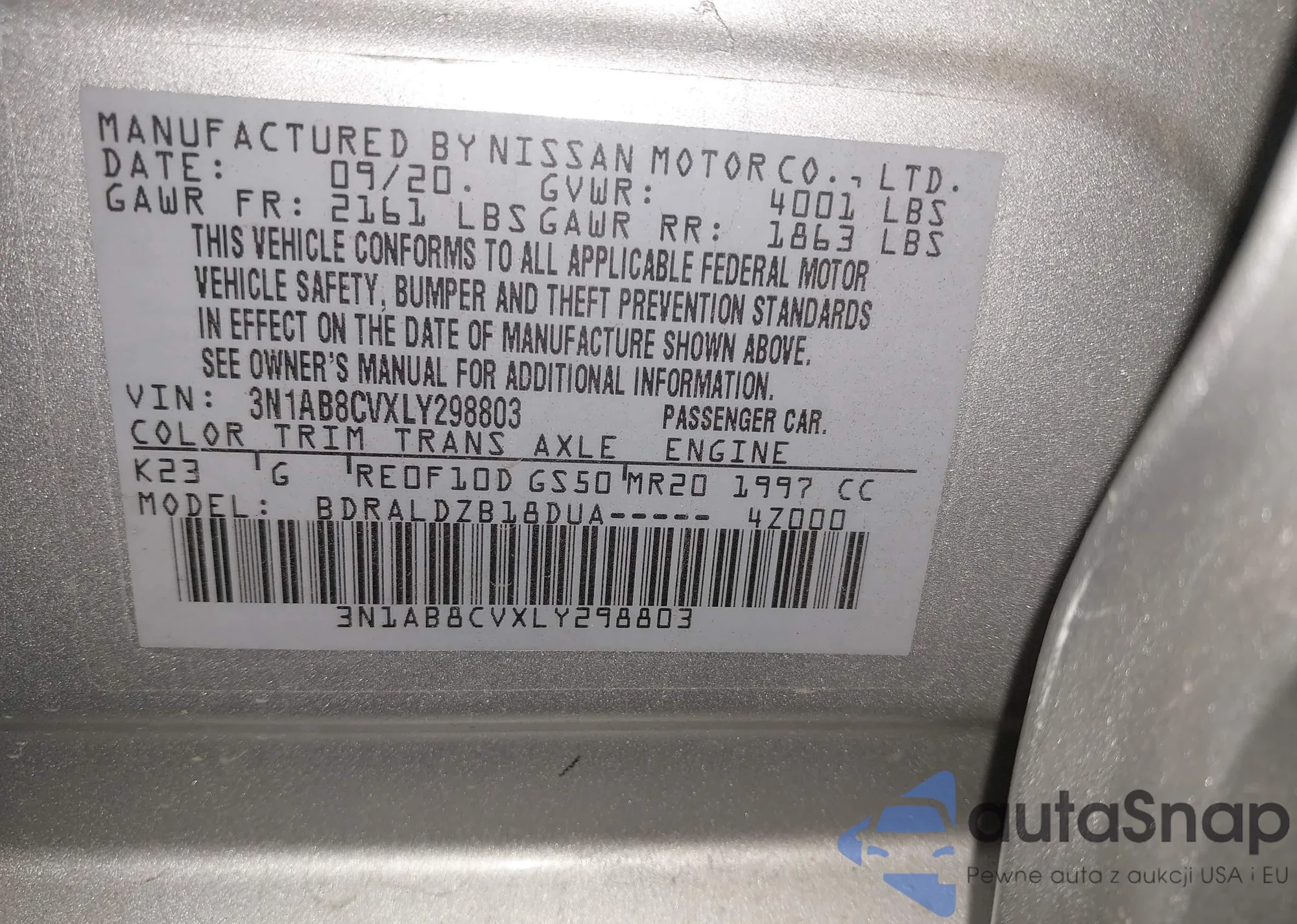 • VIN 3N1AB8CVXLY298803