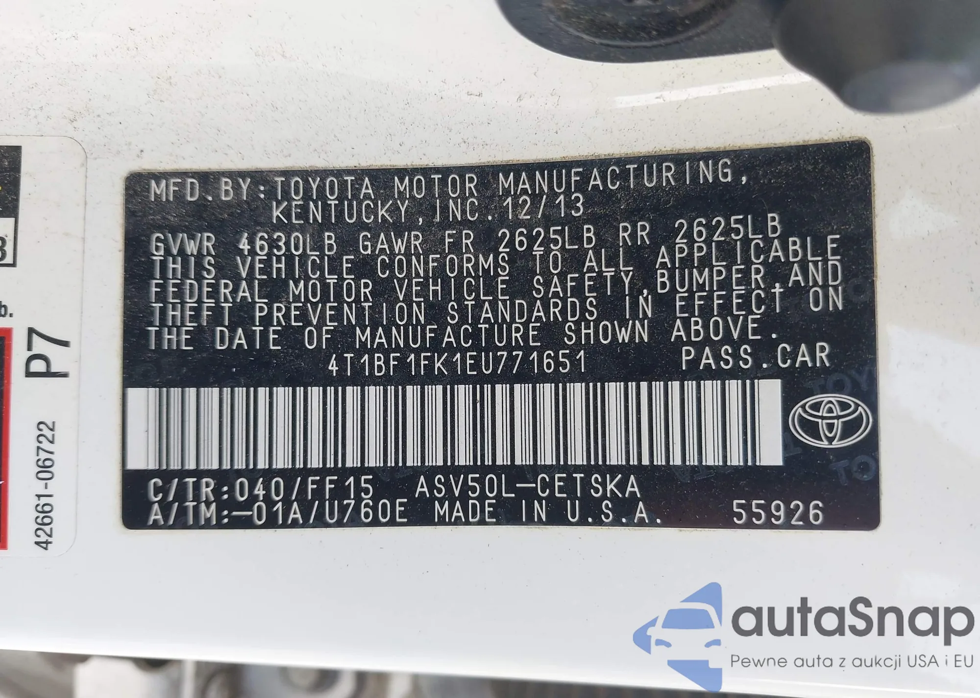• VIN 4T1BF1FK1EU771651