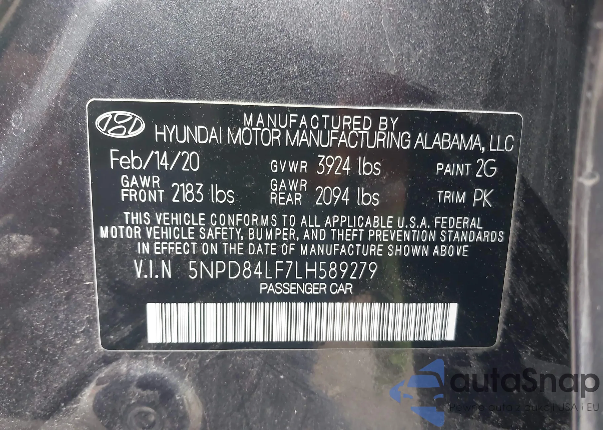 • VIN 5NPD84LF7LH589279