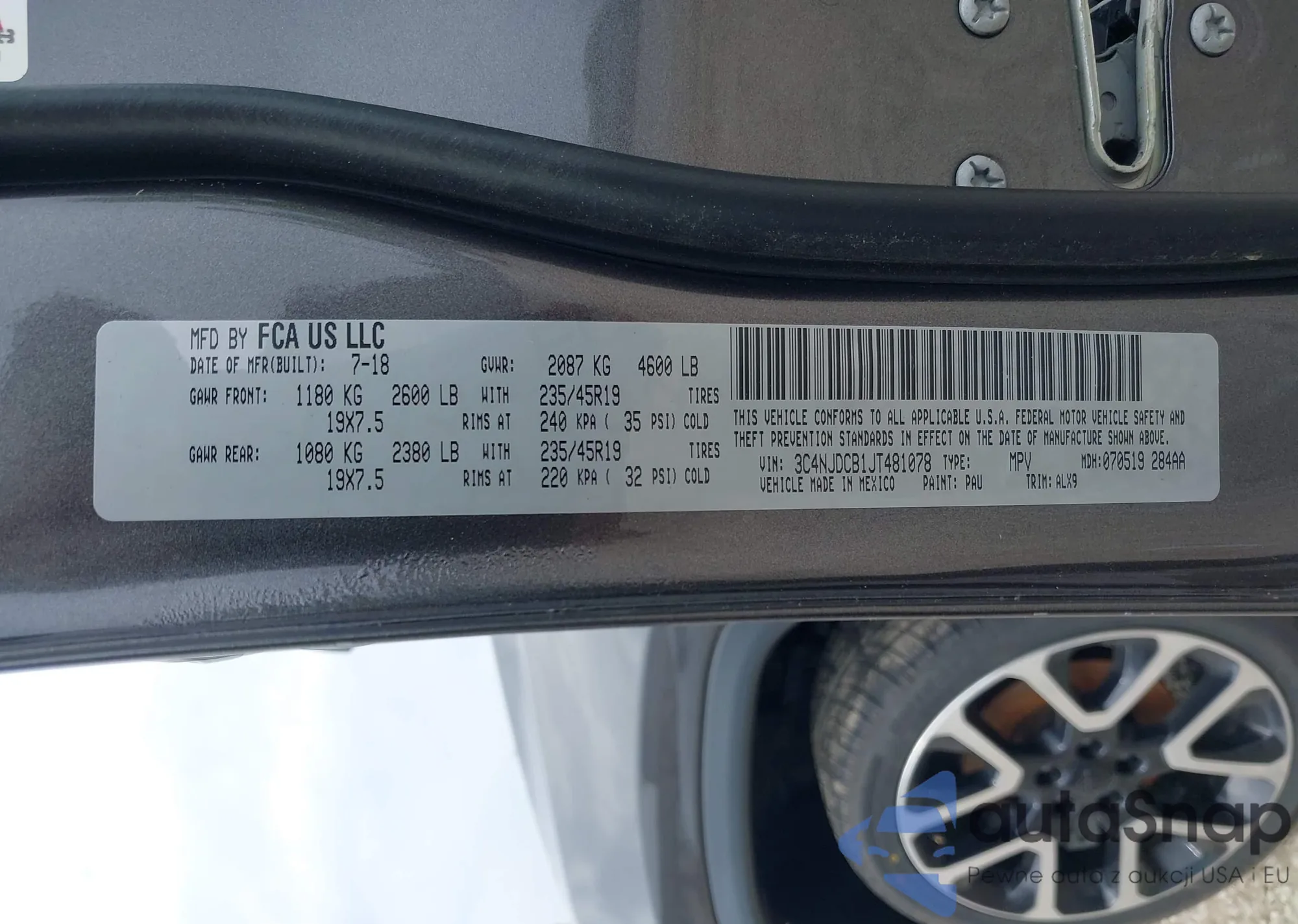 LOT: 42215310 VIN: 3C4NJDCB1JT481078