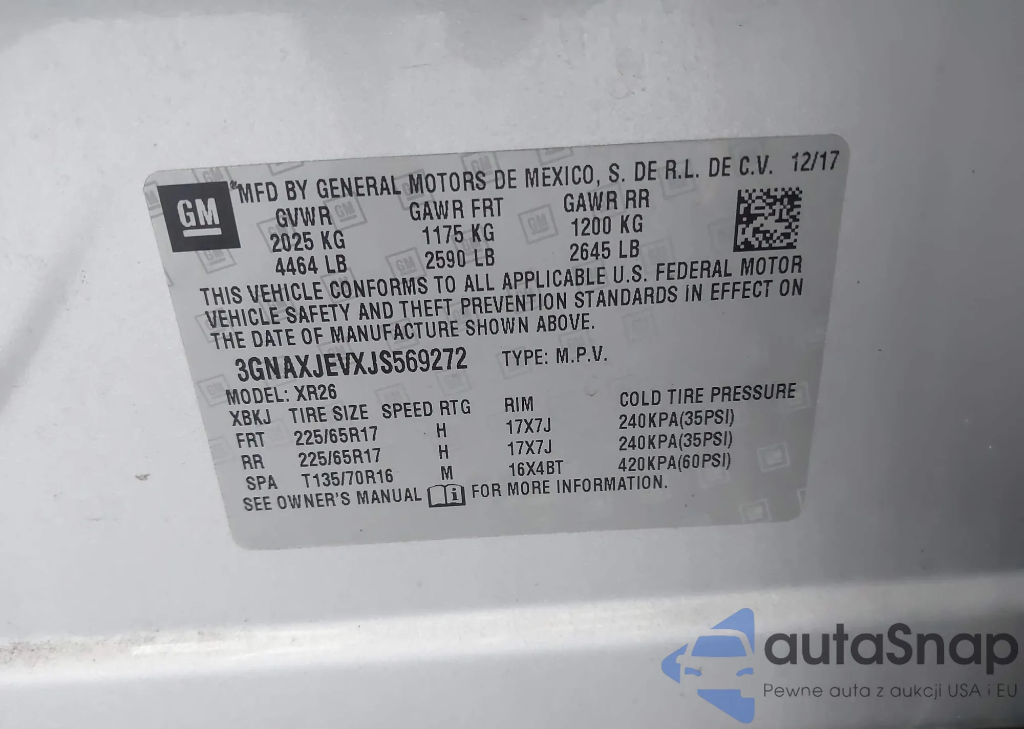 LOT: 42220648 VIN: 3GNAXJEVXJS569272