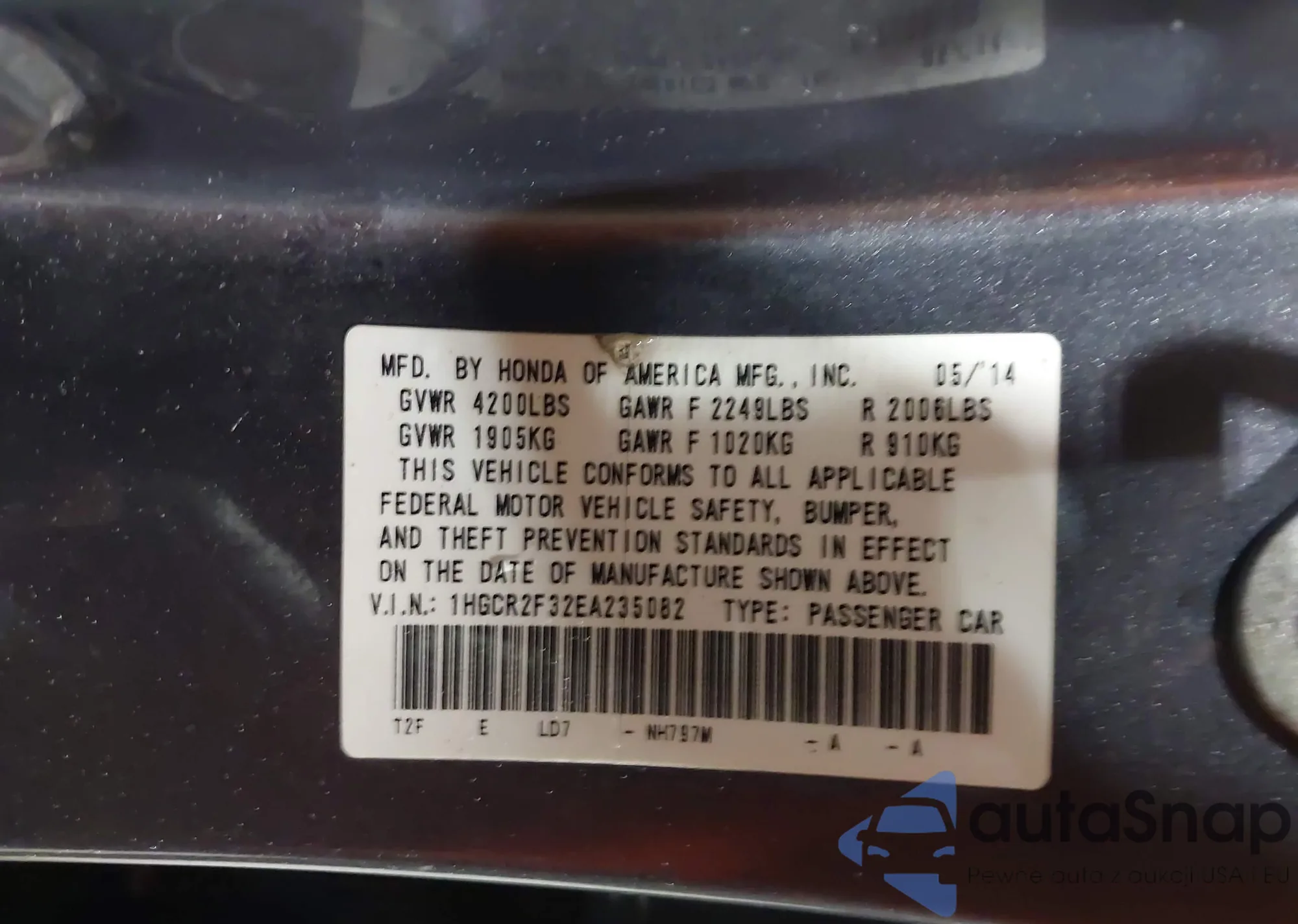 LOT: 42225758 VIN: 1HGCR2F32EA235082