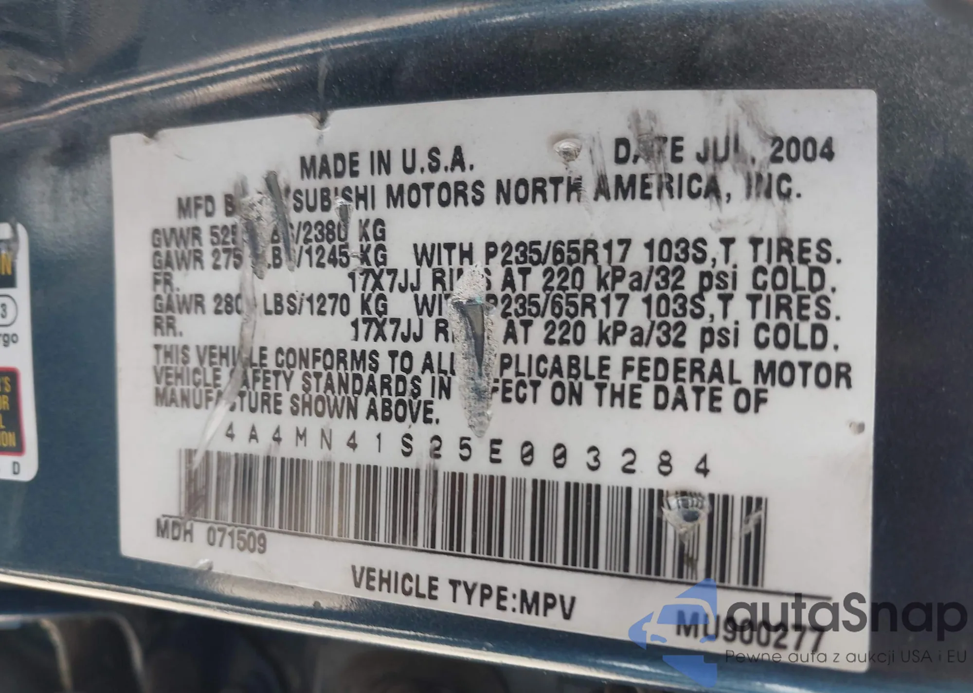 • VIN JN8AS5MV3DW622679