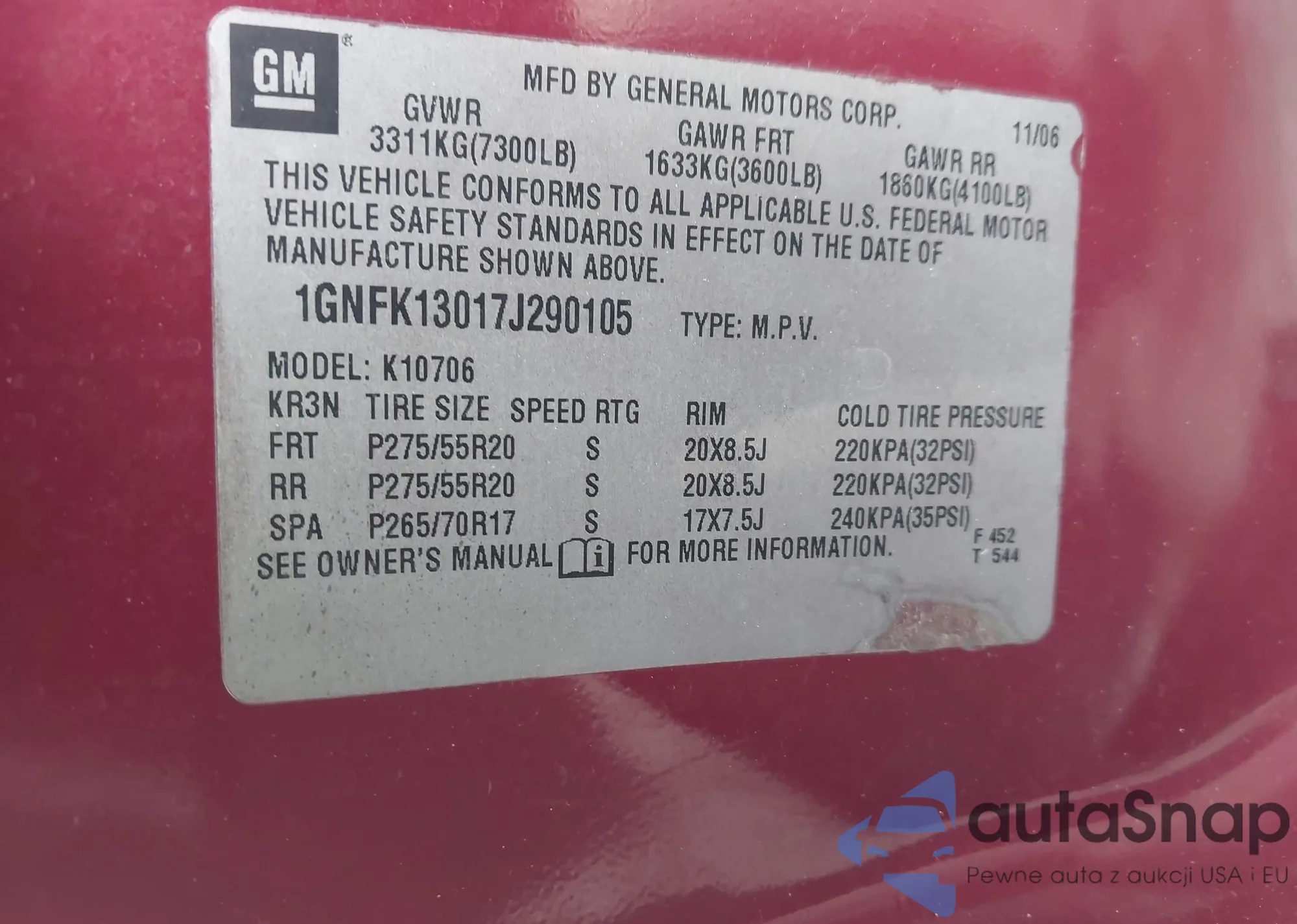 LOT: 42229754 VIN: 1GNFK13017J290105