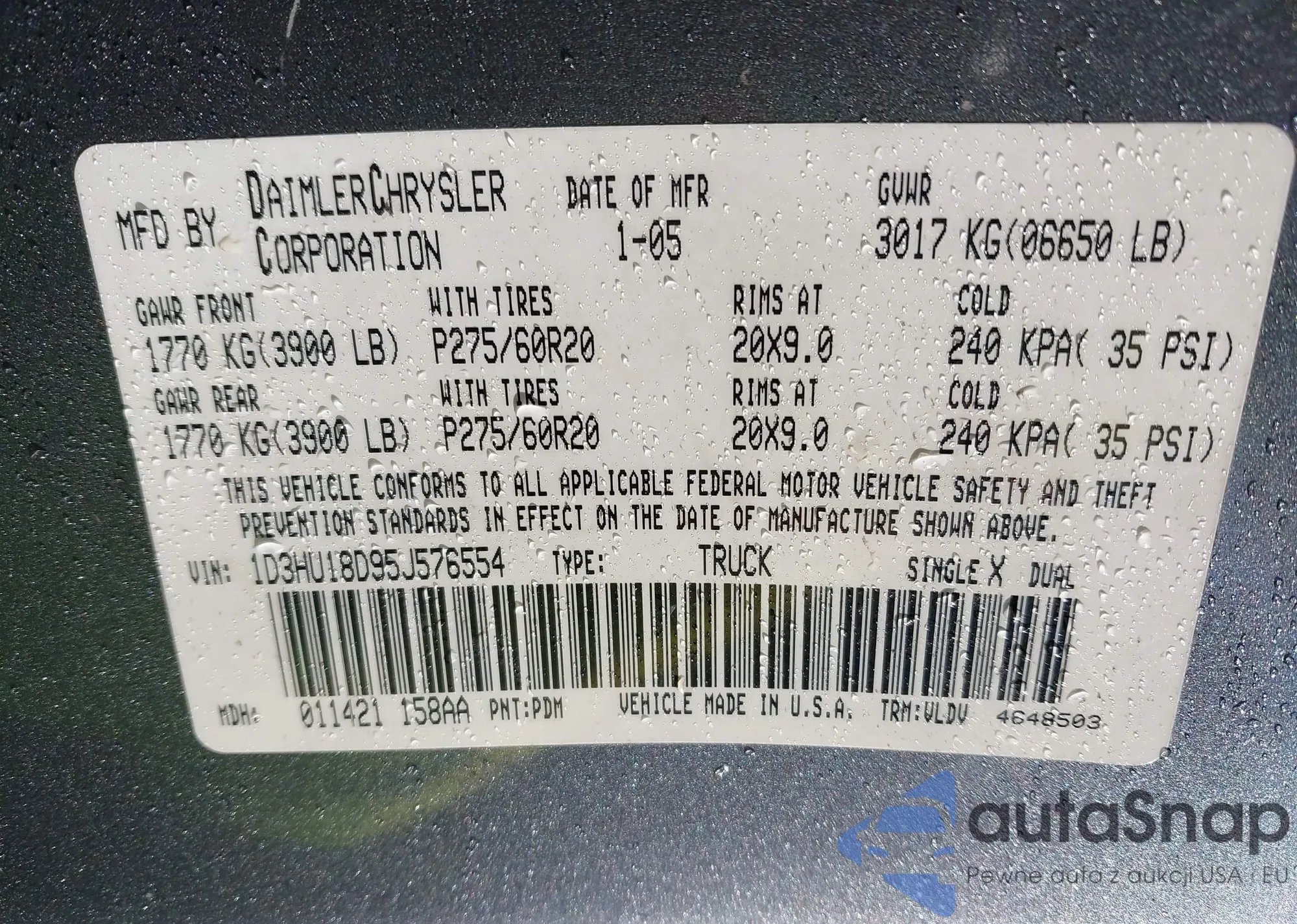 LOT: 42224458 VIN: KNDPBCA29D7355403