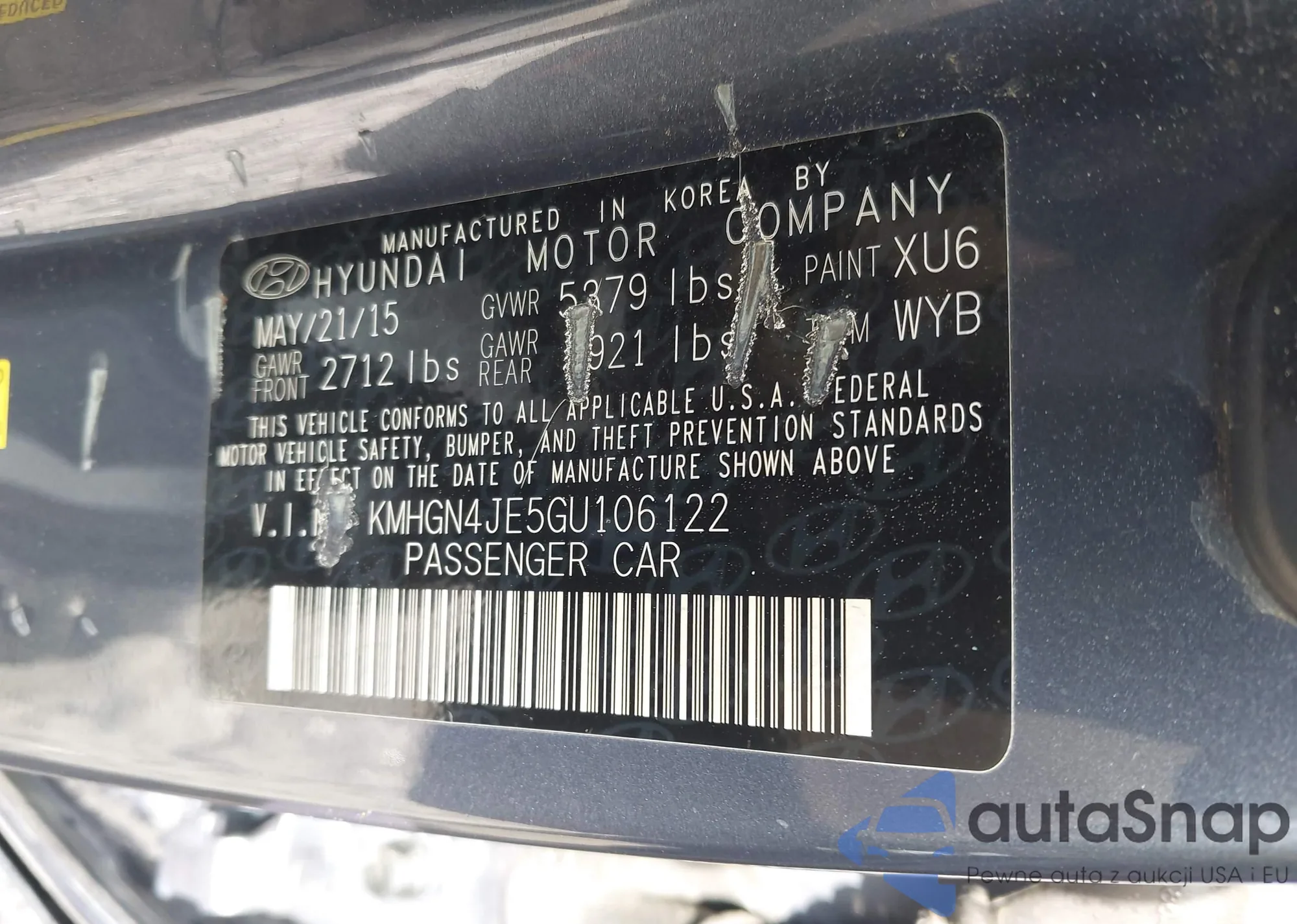 LOT: 42237295 VIN: KMHGN4JE5GU106122