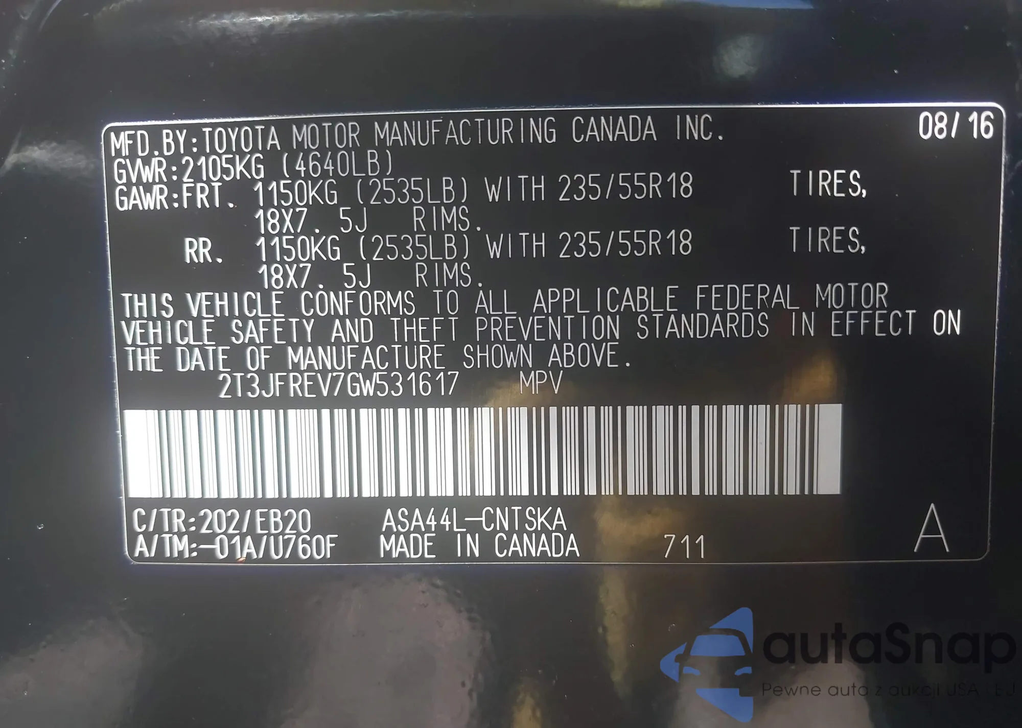 • VIN 2T3JFREV7GW531617