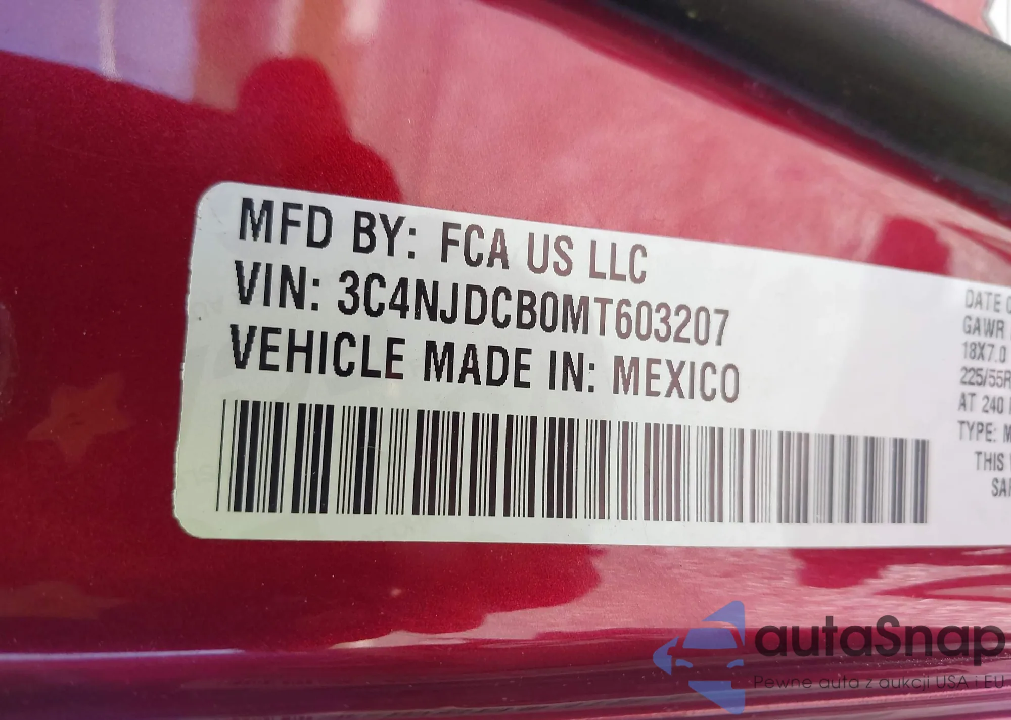 • VIN 3C4NJDCB0MT603207