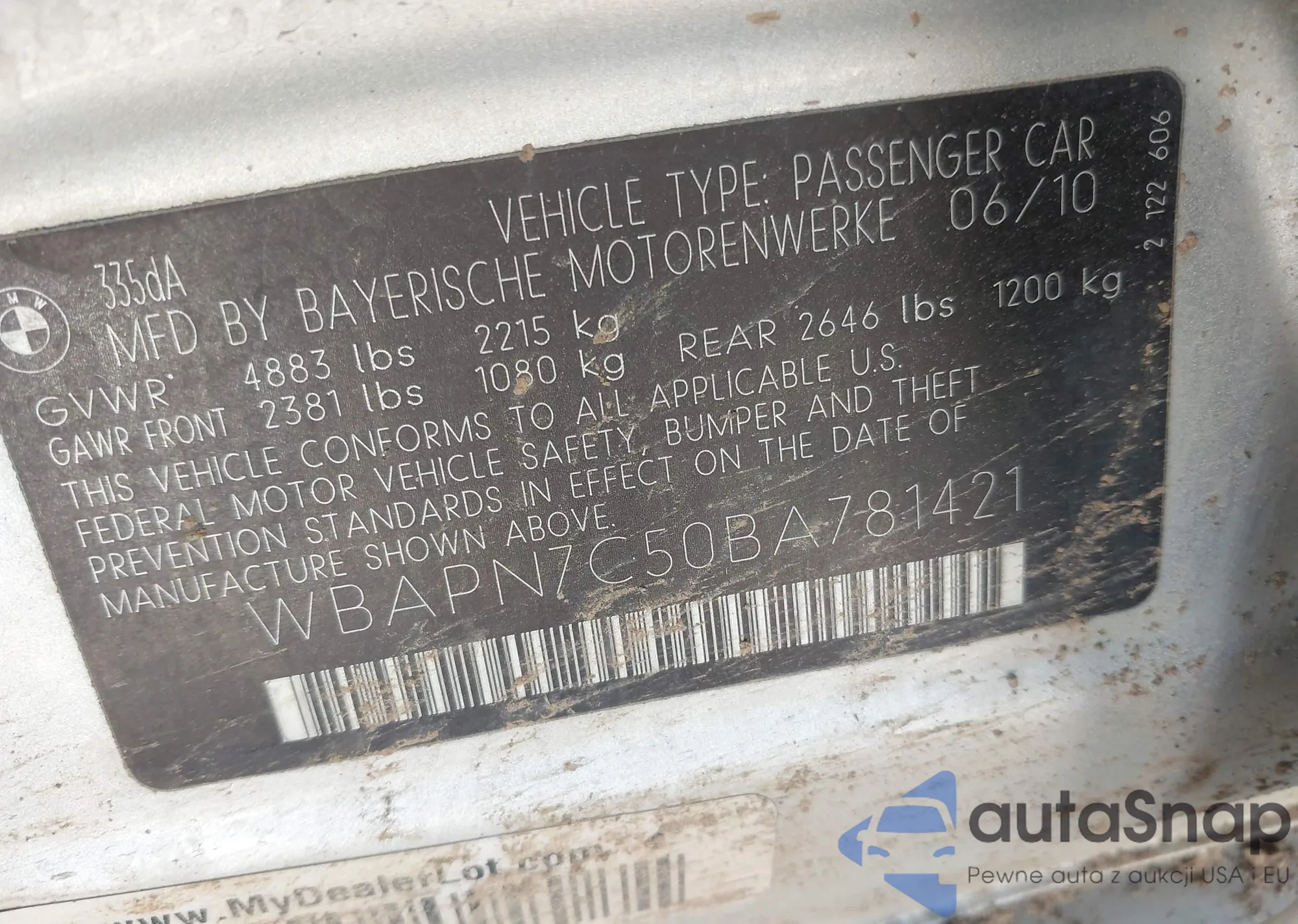 • VIN WBAPN7C50BA781421