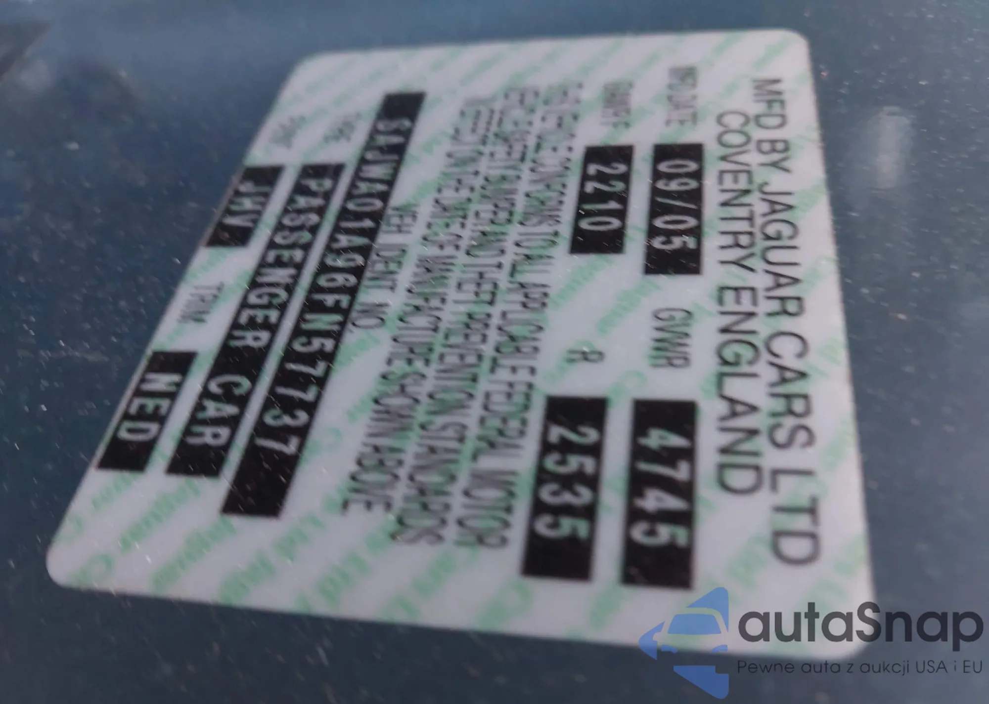 • VIN SAJWA01A96FN57737