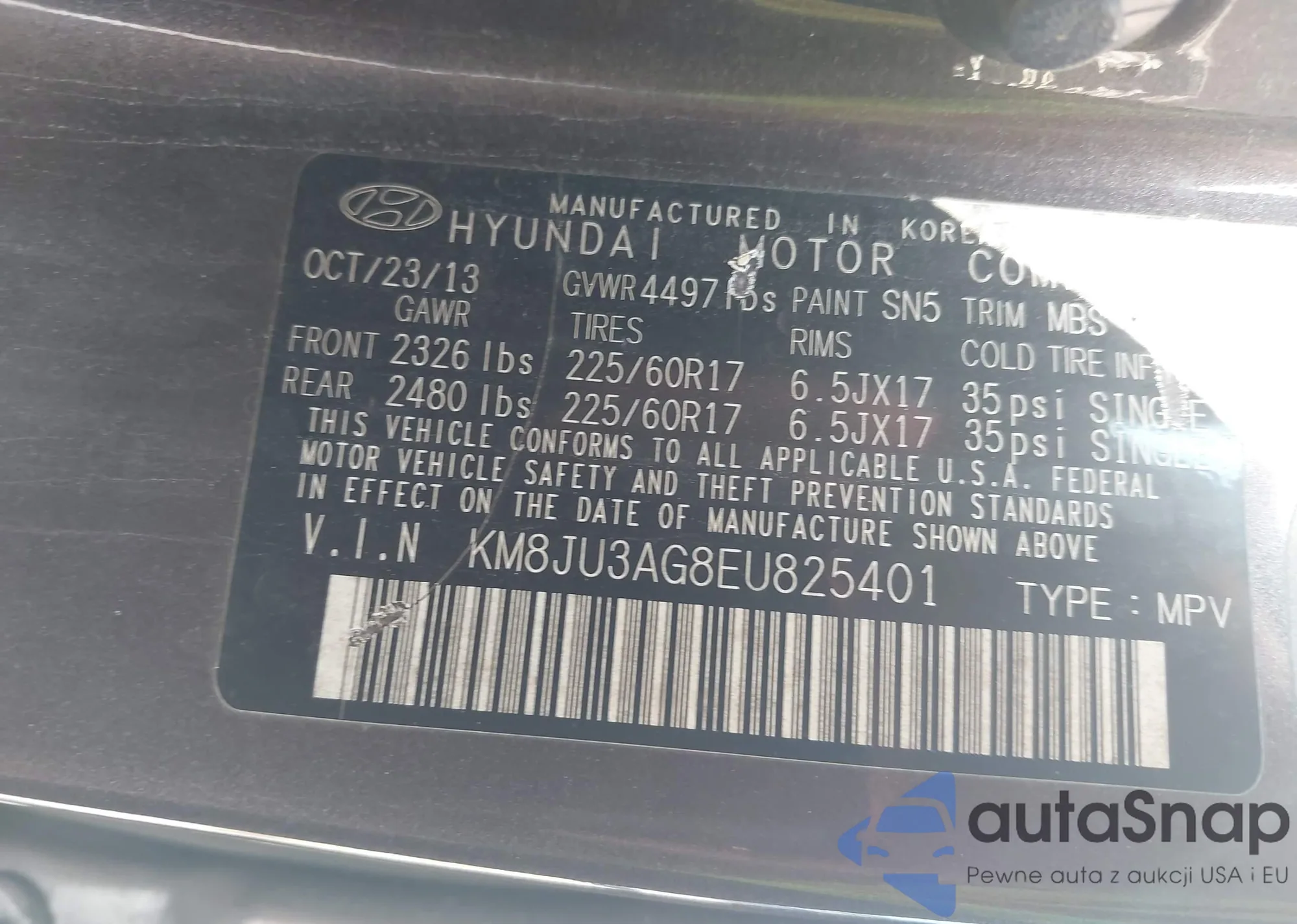 • VIN KM8JU3AG8EU825401