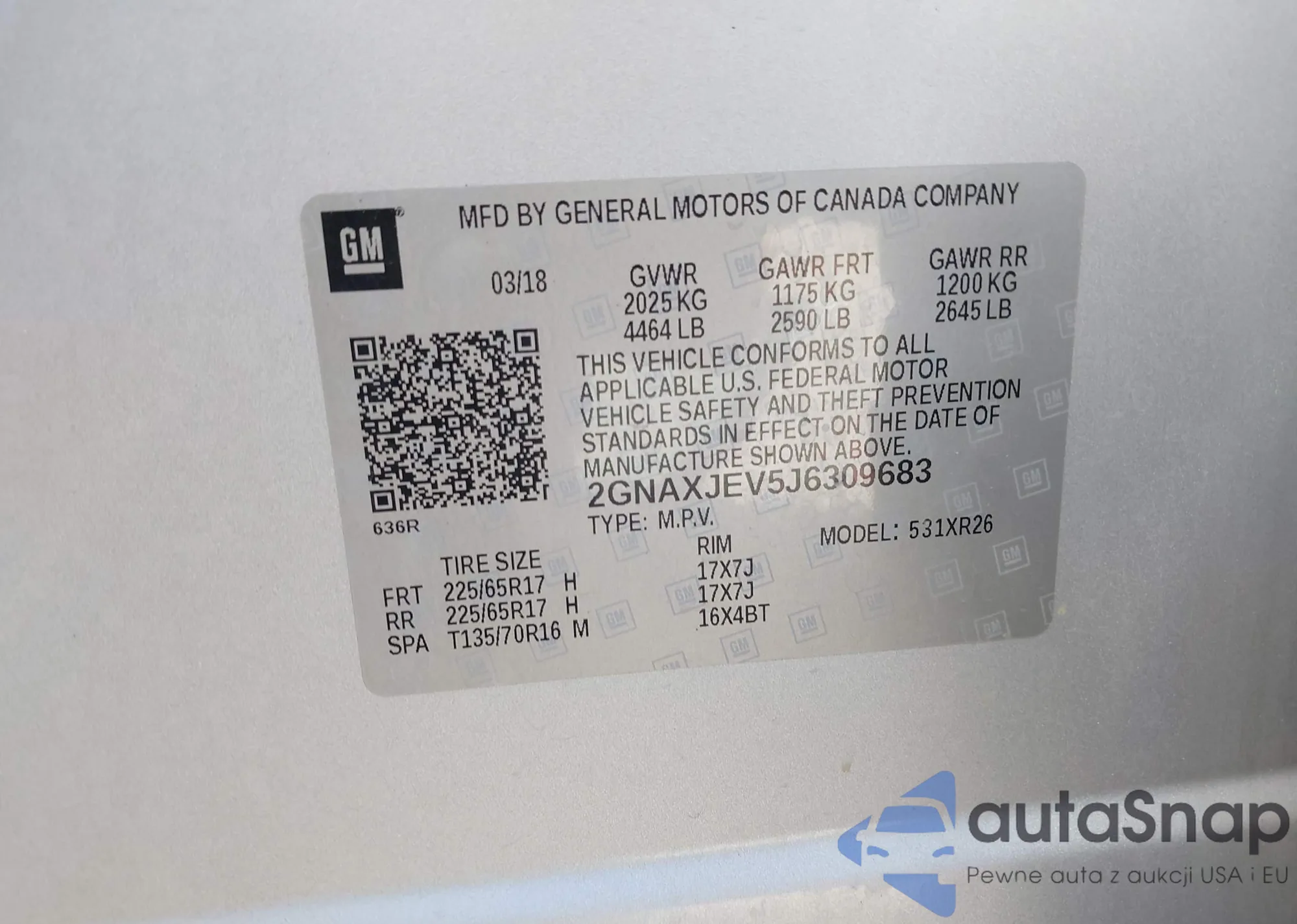 LOT: 42238143 VIN: 2GNAXJEV5J6309683