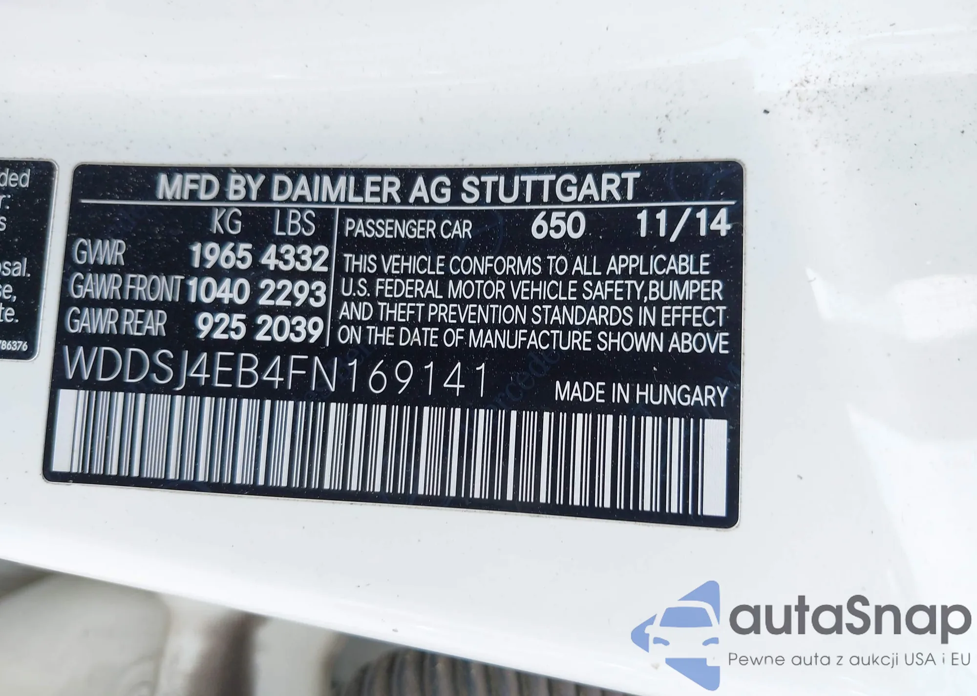 • VIN WDDSJ4EB4FN169141