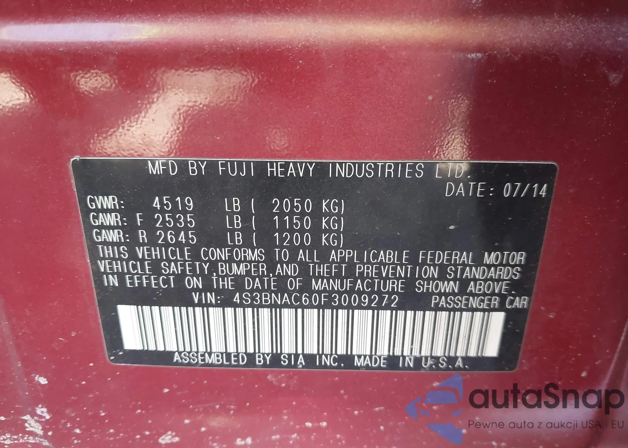 LOT: 42059136 VIN: 4S3BNAC60F3009272