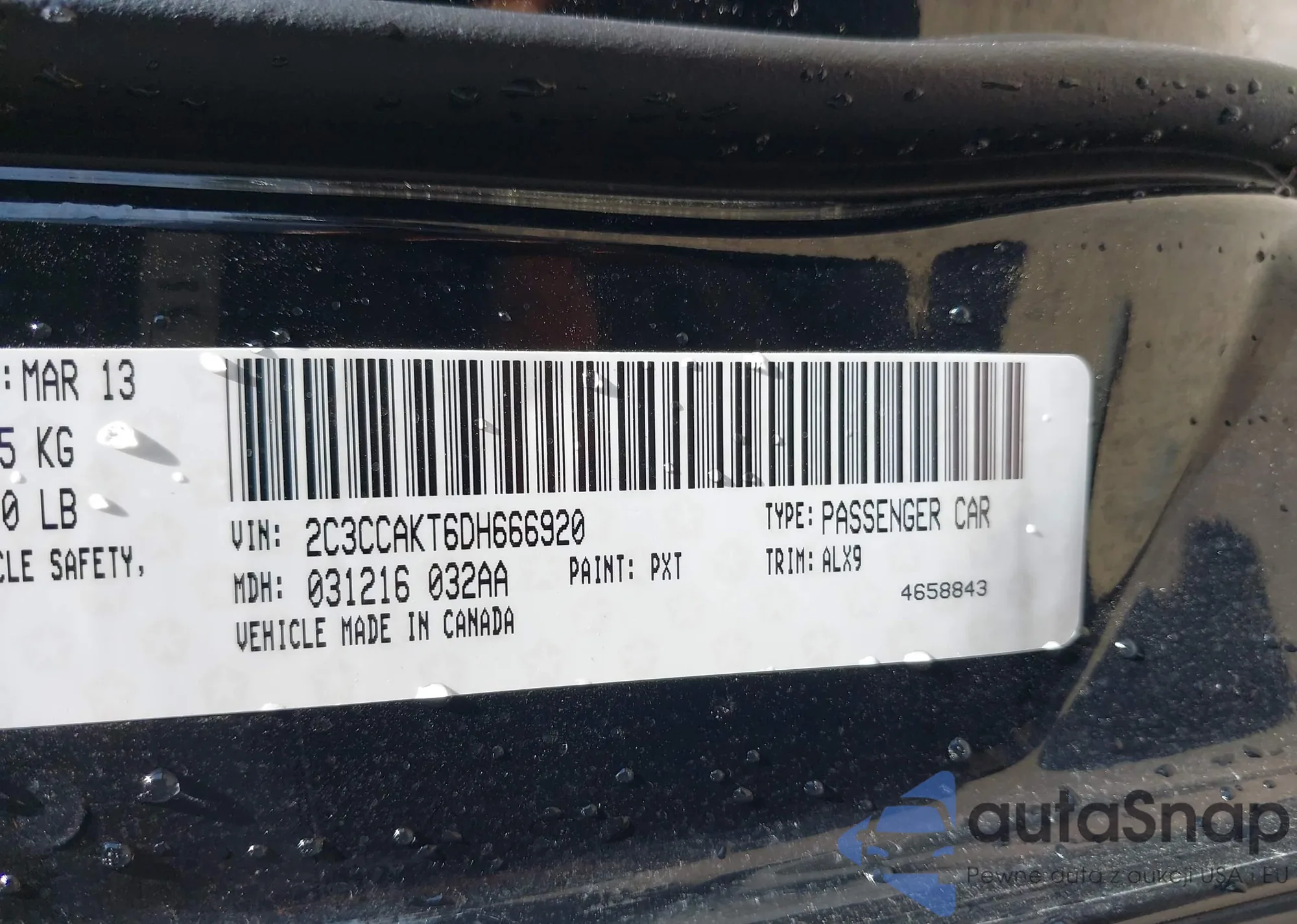 LOT: 42092565 VIN: 2C3CCAKT6DH666920