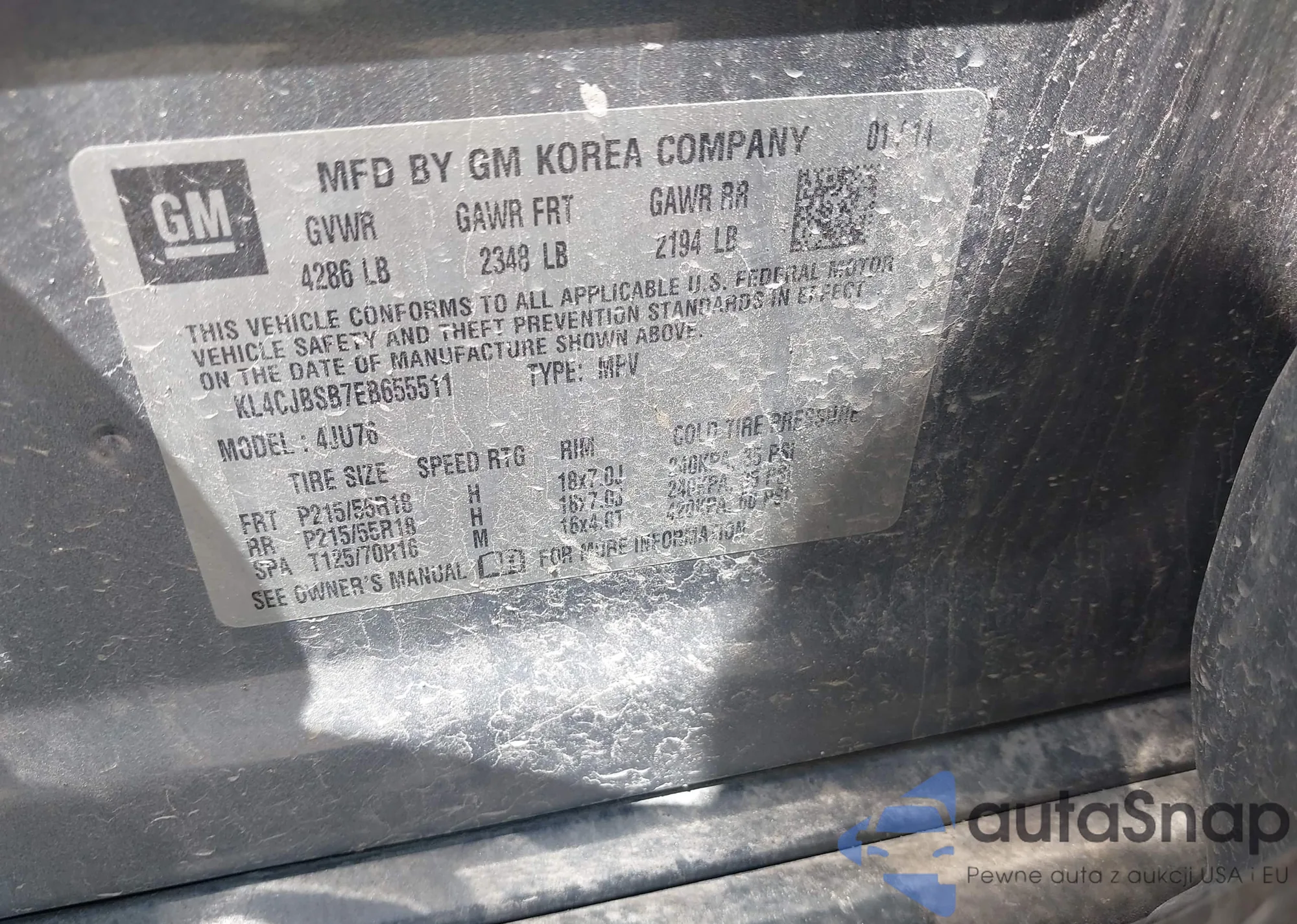 • VIN KL4CJBSB7EB655511