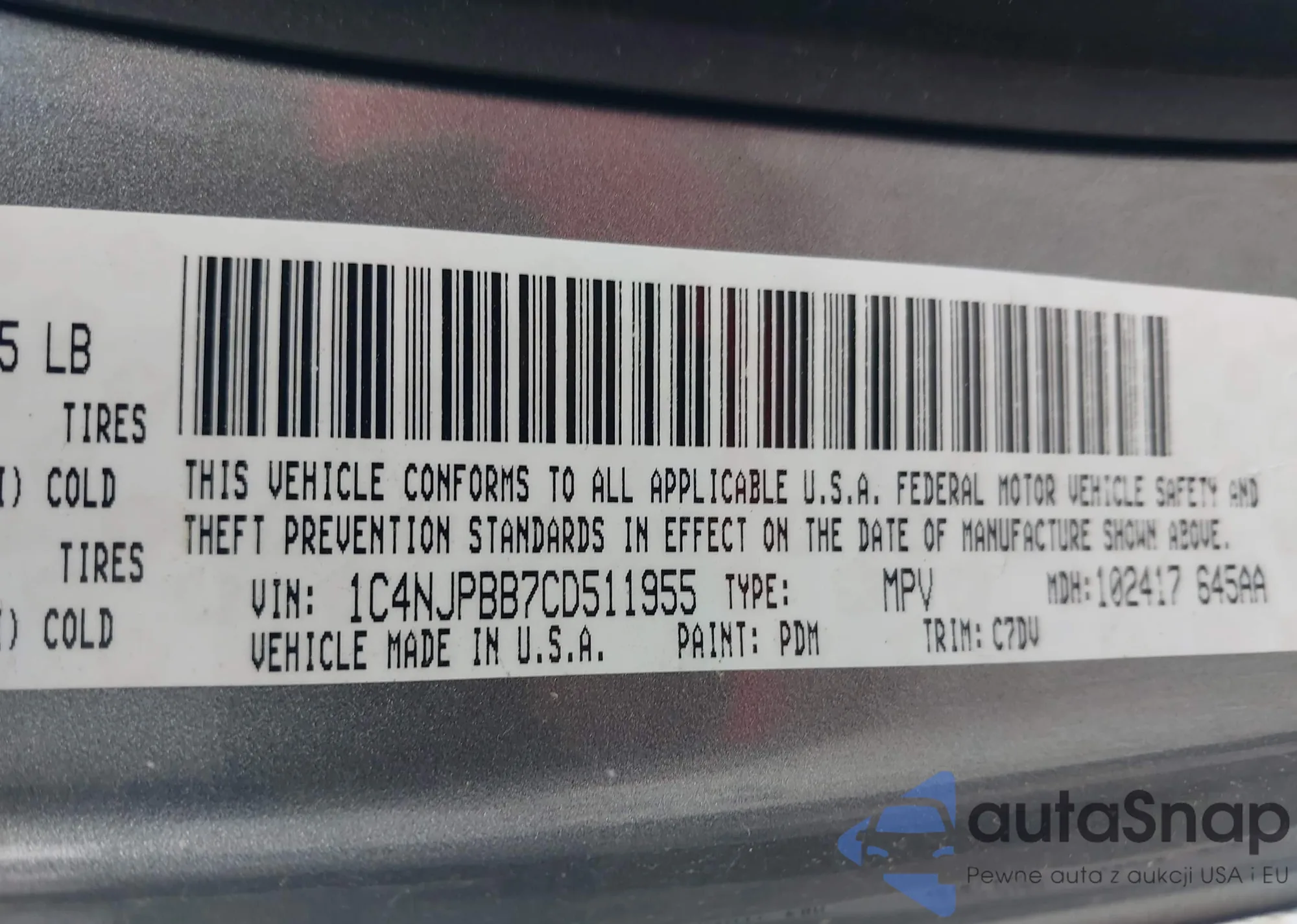 LOT: 42306934 VIN: 1C4NJPBB7CD511955