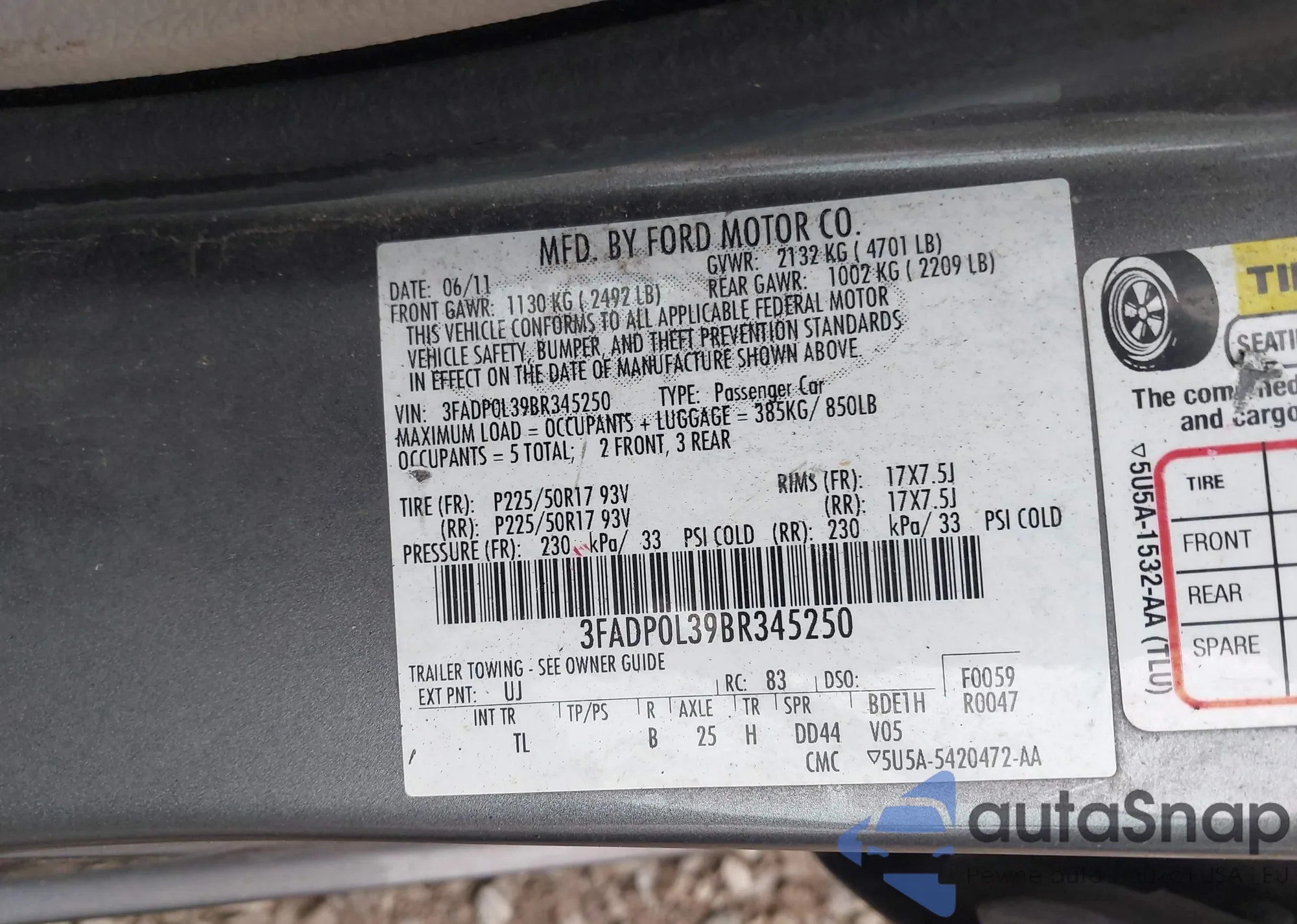 LOT: 42319401 VIN: 3FADP0L39BR345250