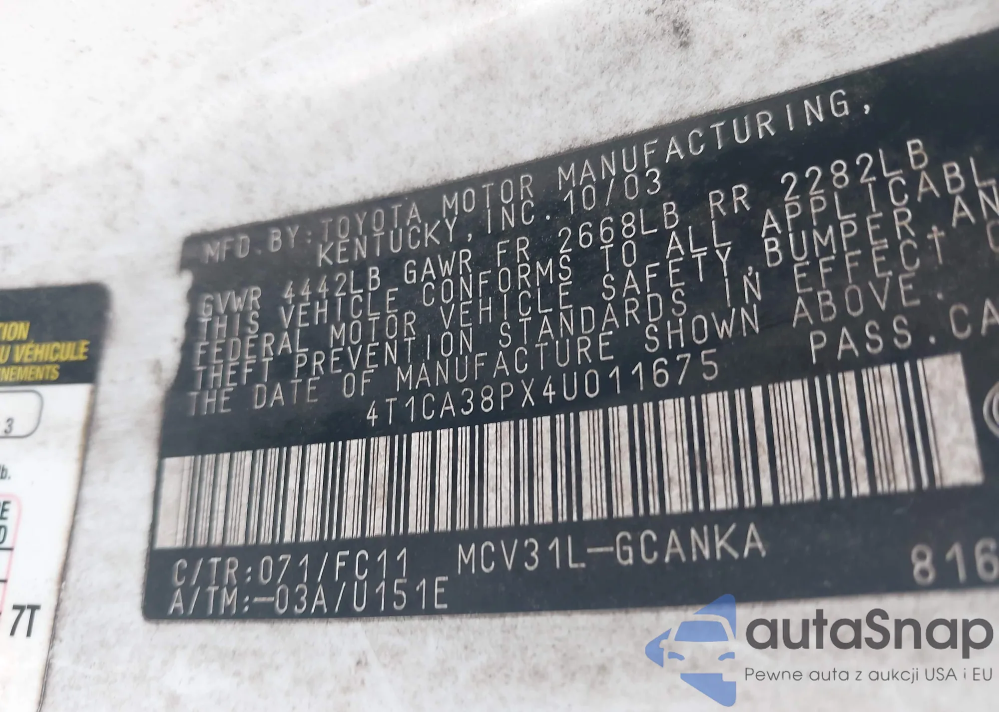 • VIN 4T1CA38PX4U011675