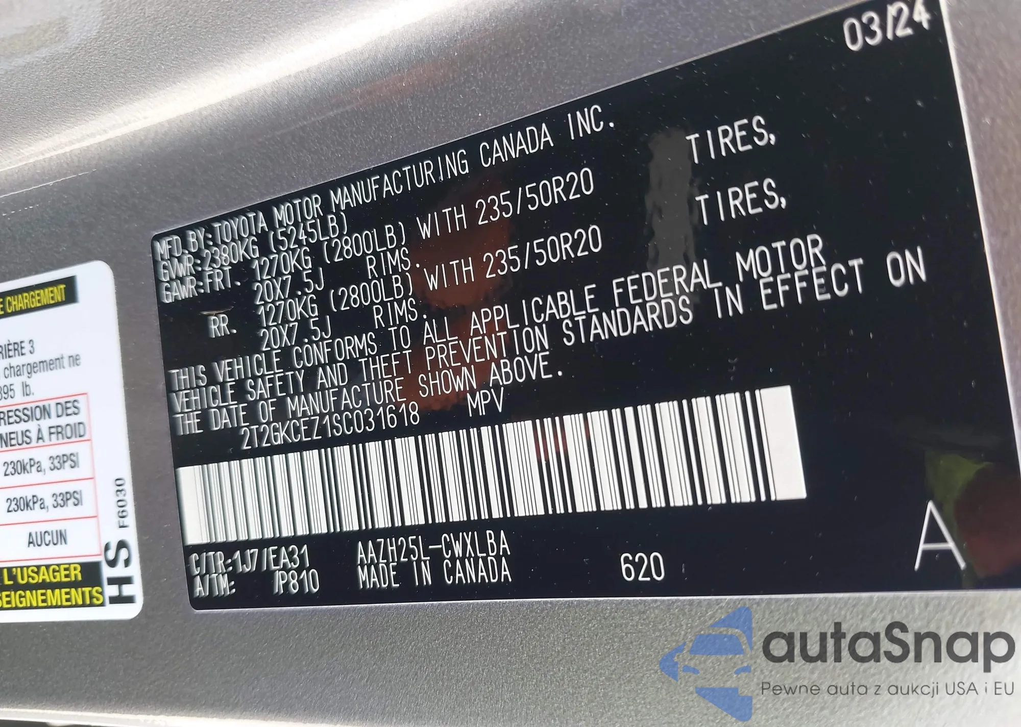 • VIN 2T2GKCEZ1SC031618