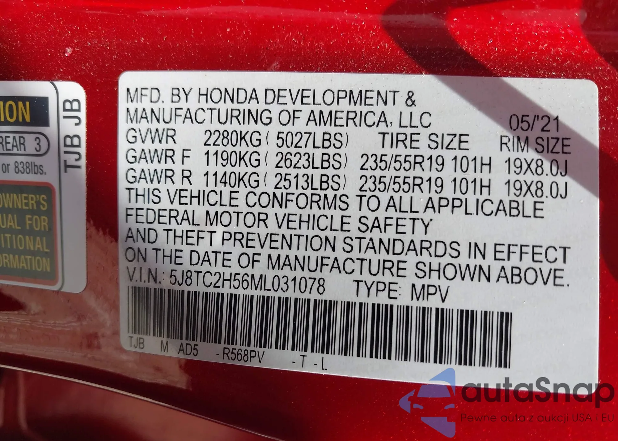 • VIN 5J8TC2H56ML031078