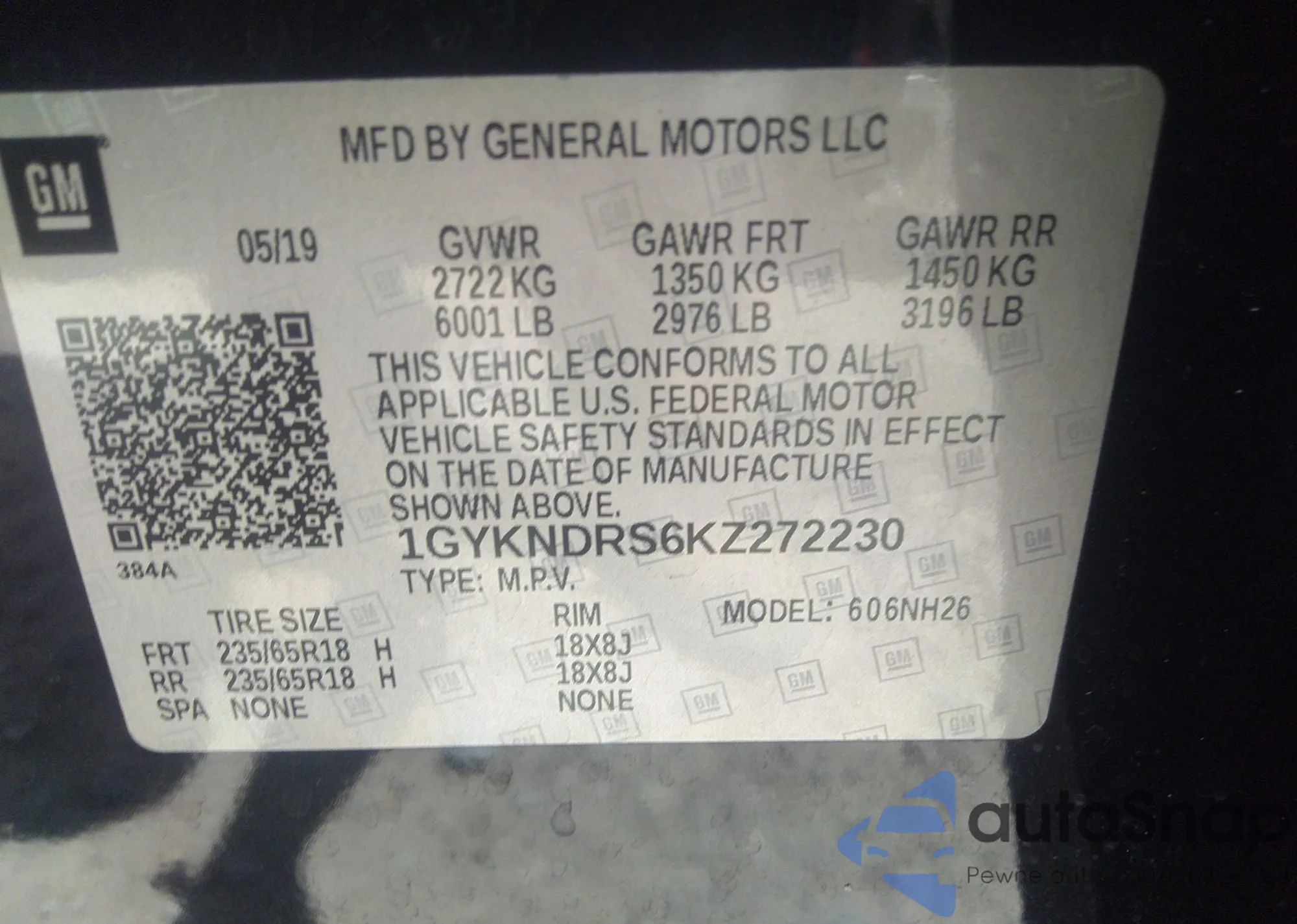 LOT: 42467883 VIN: 1GYKNDRS6KZ272230