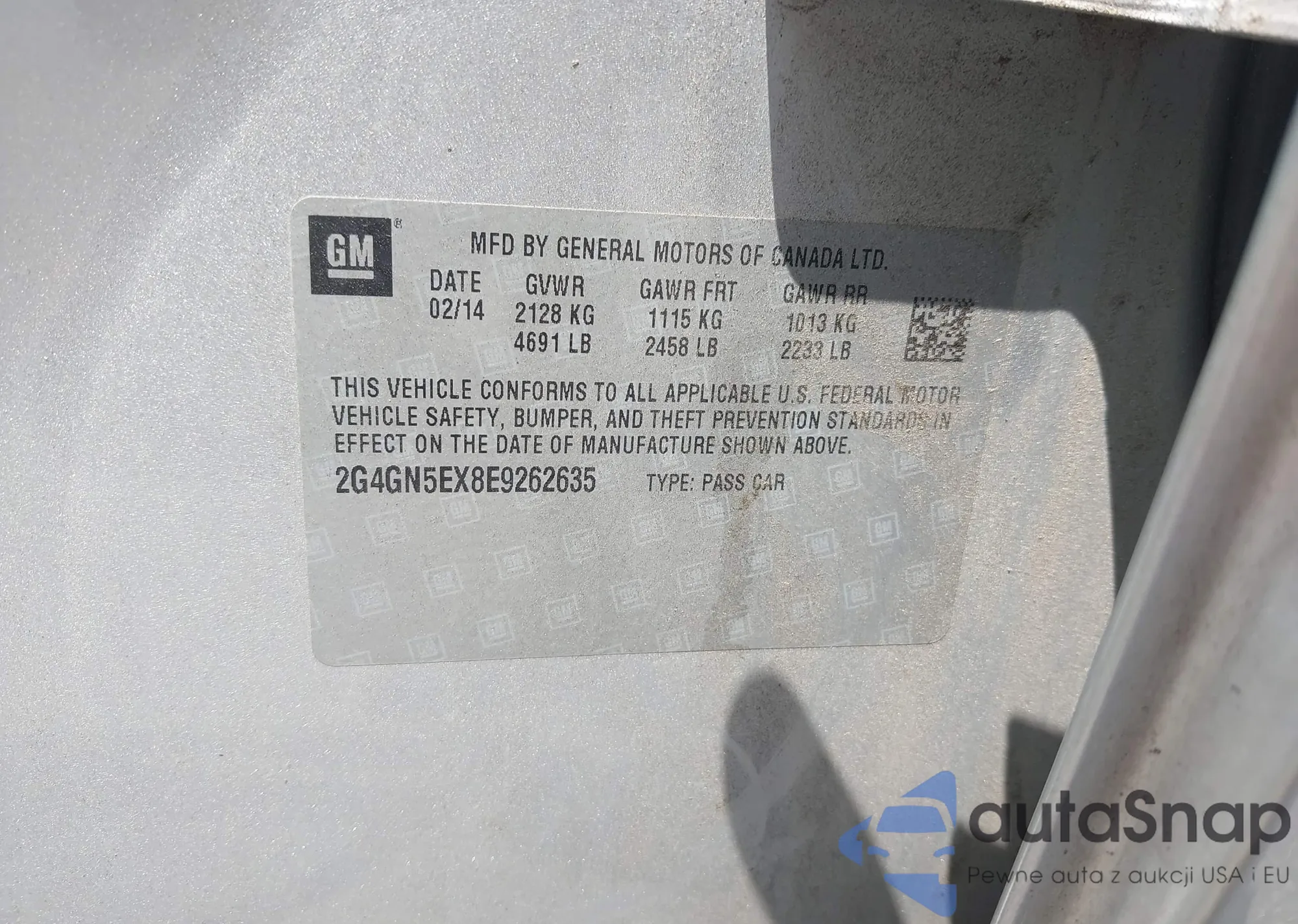 LOT: 42468231 VIN: 2GNAXJEV0M6103420