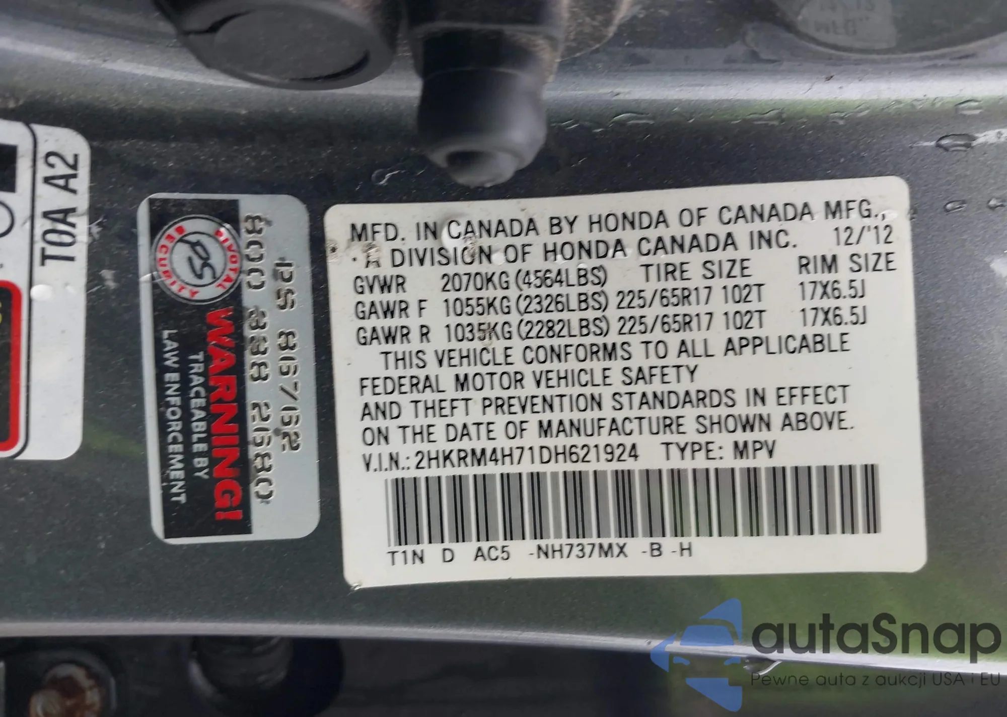 • VIN 2HKRM4H71DH621924