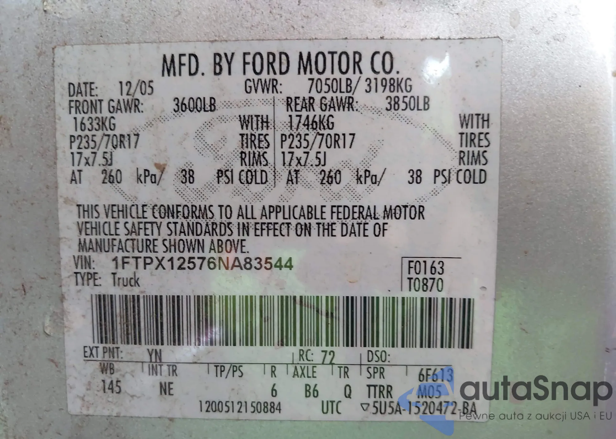 LOT: 42460174 VIN: 1FTPX12576NA83544