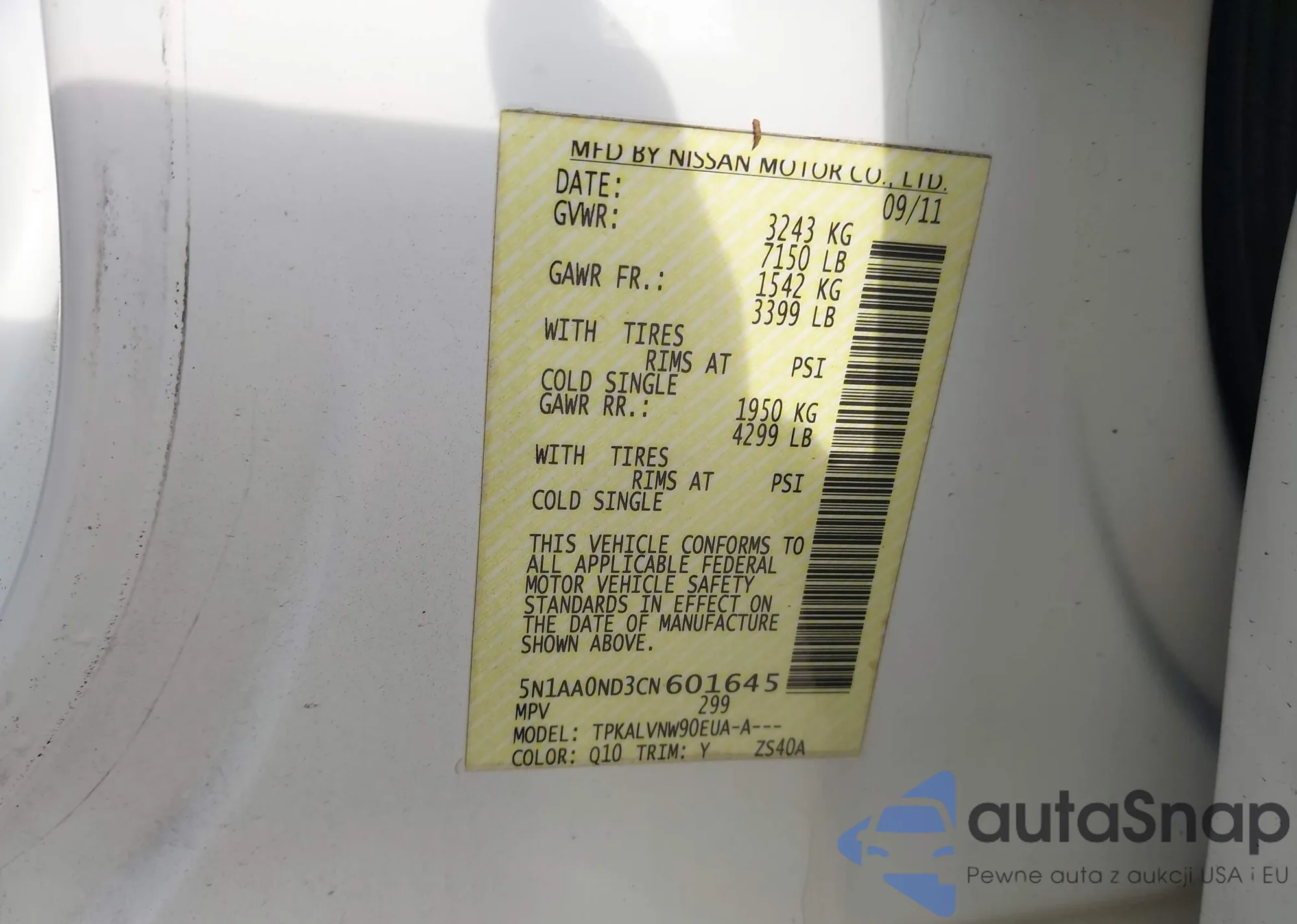 LOT: 42431667 VIN: 1N4AL2AP3AN558969