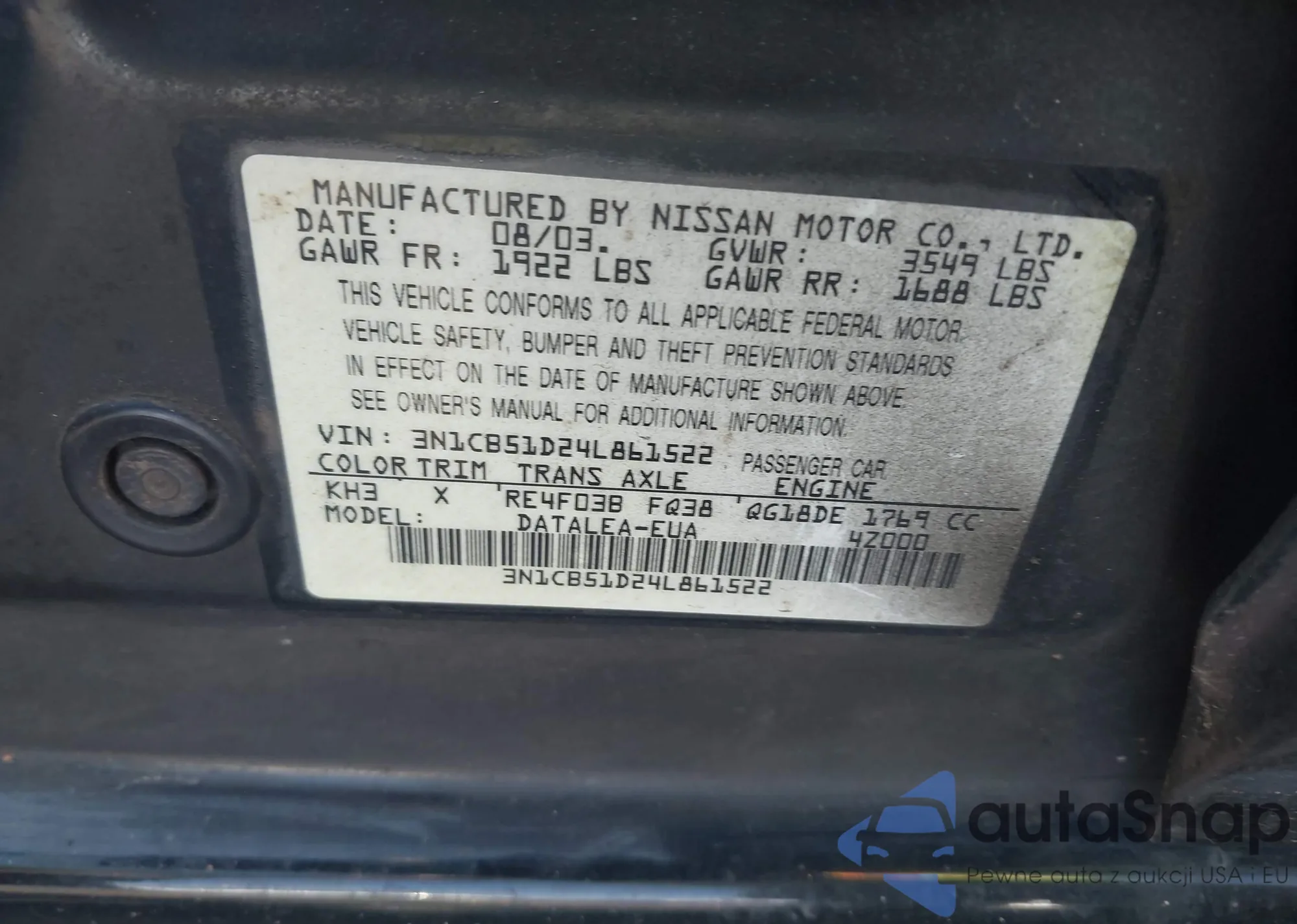• VIN 3N1CB51D24L861522