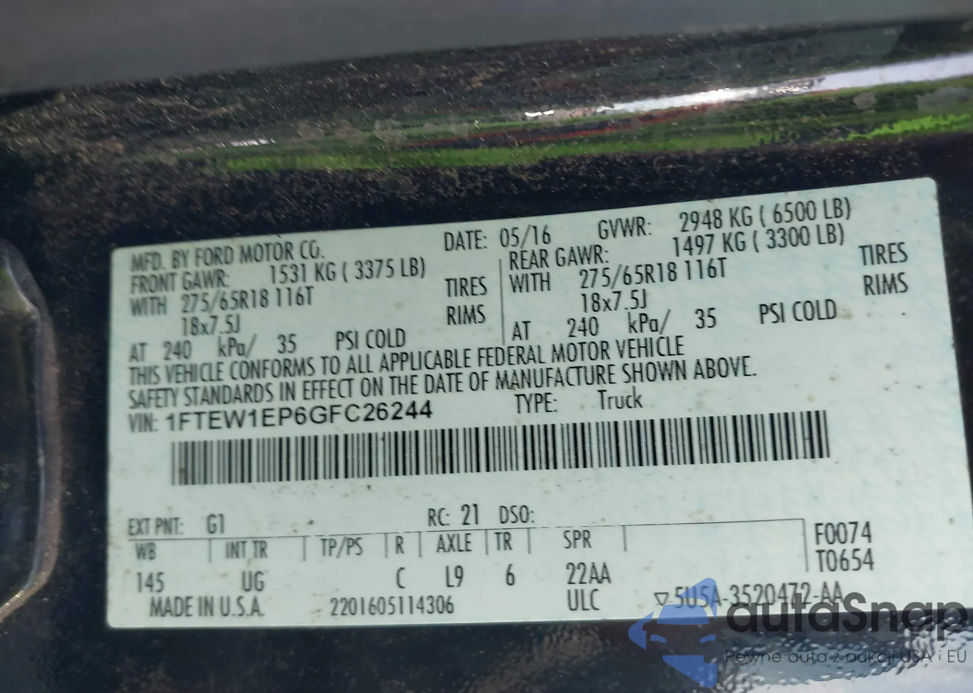 LOT: 42347841 VIN: 1FTRW07L13KB28665