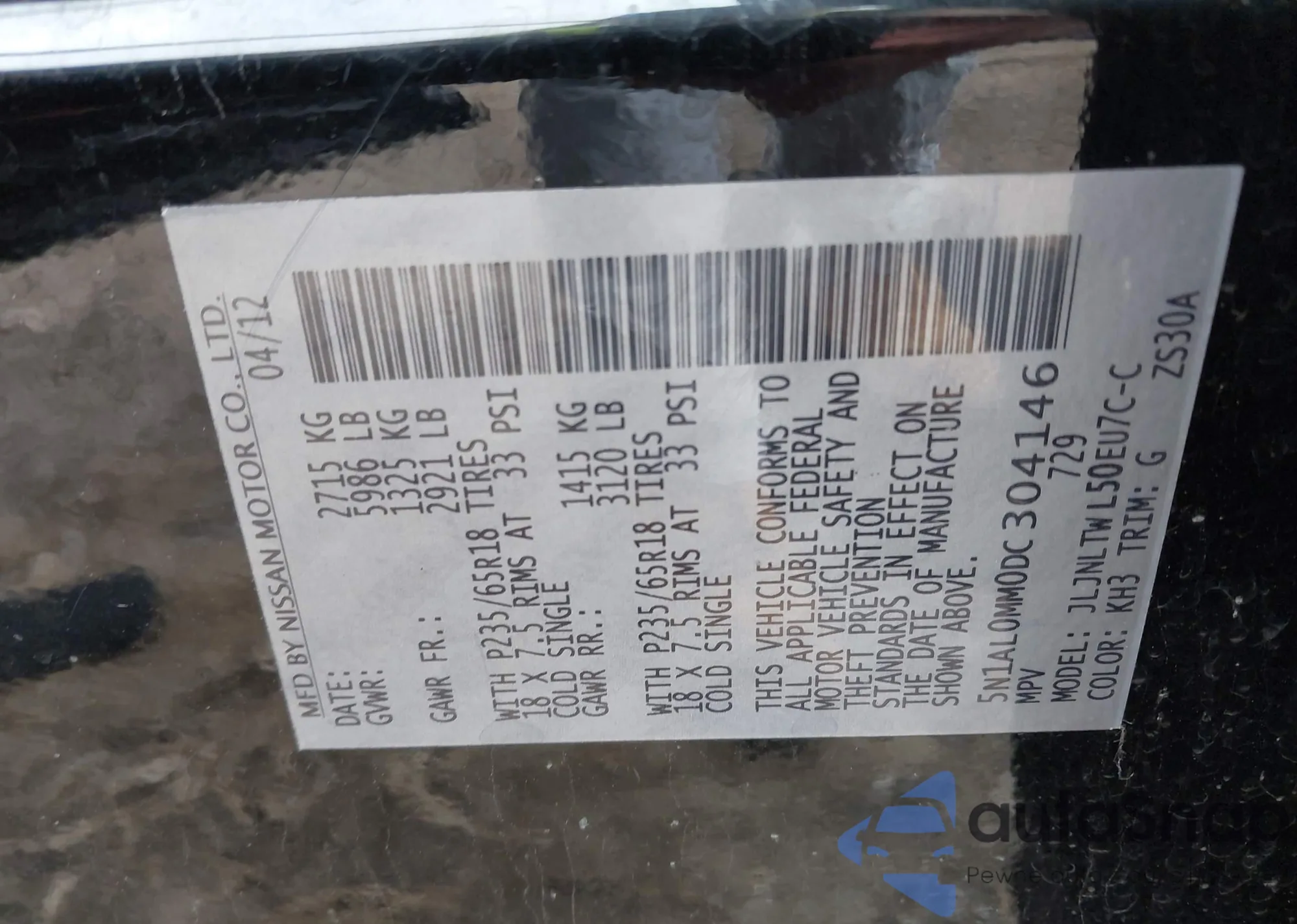 • VIN 5XYZK4AG5CG159034
