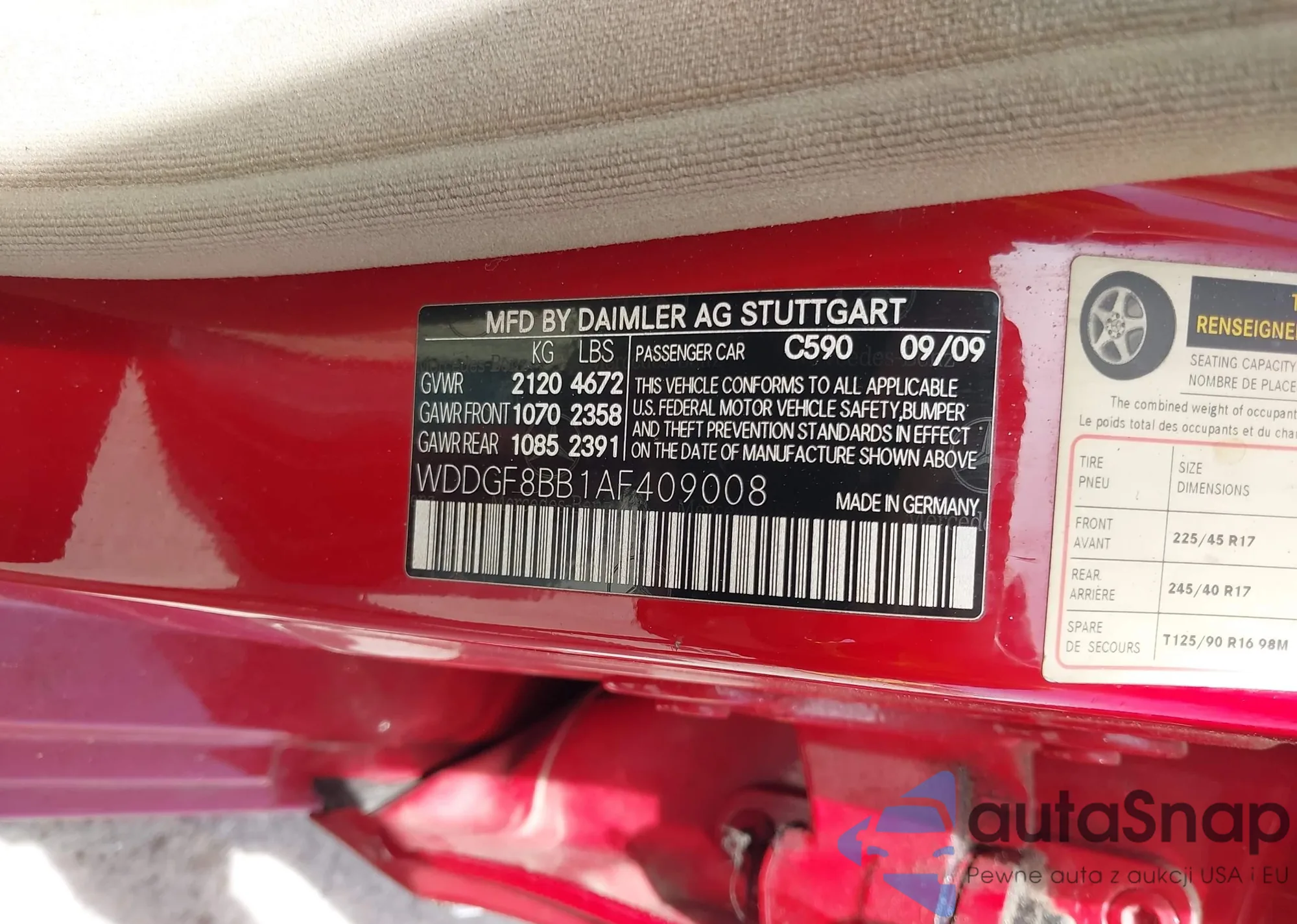 LOT: 42369761 VIN: 1HGFA165X9L004439