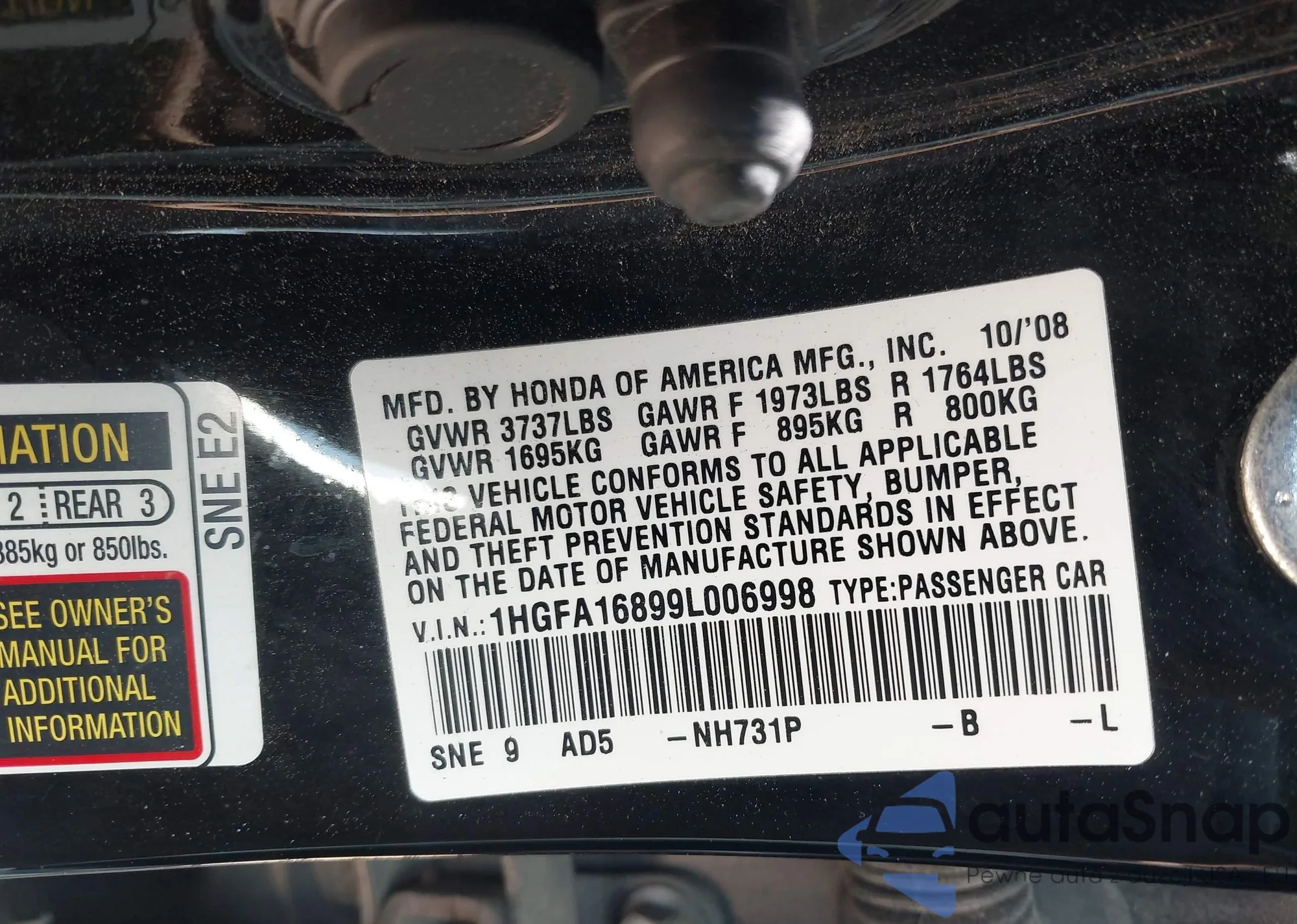 • VIN 1HGFA16899L006998