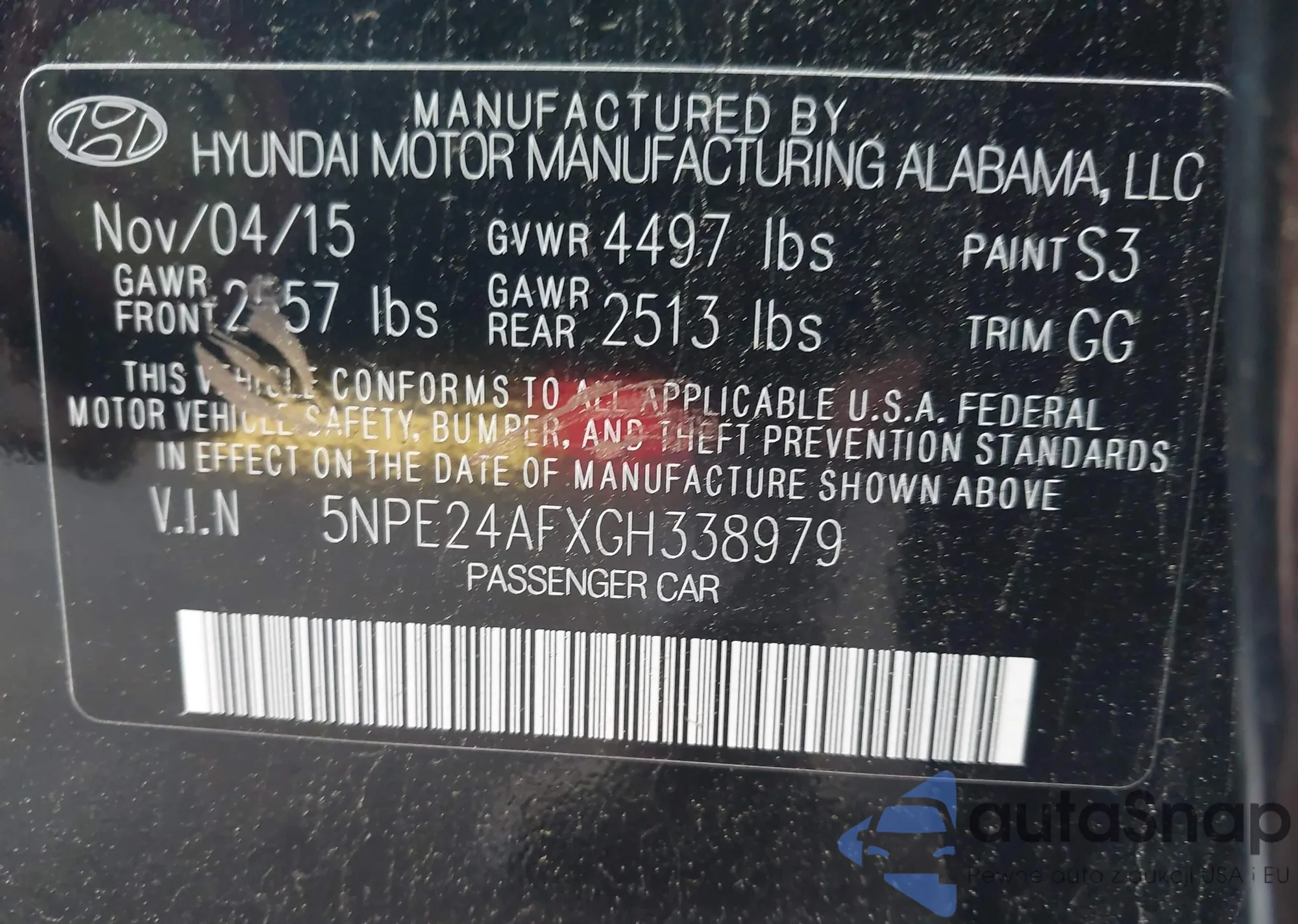 • VIN 5NPE24AFXGH338979