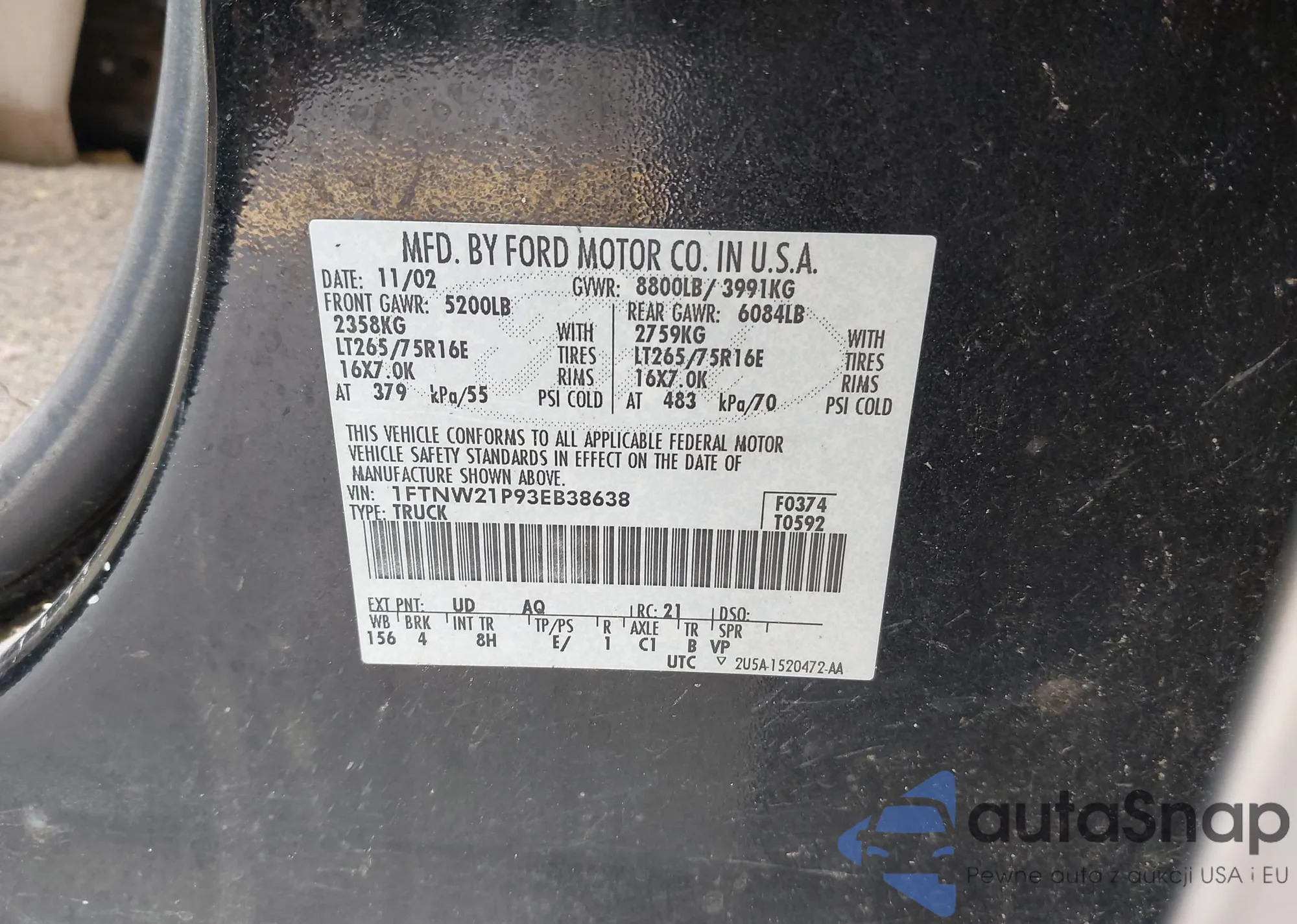 • VIN 1FTNW21P93EB38638