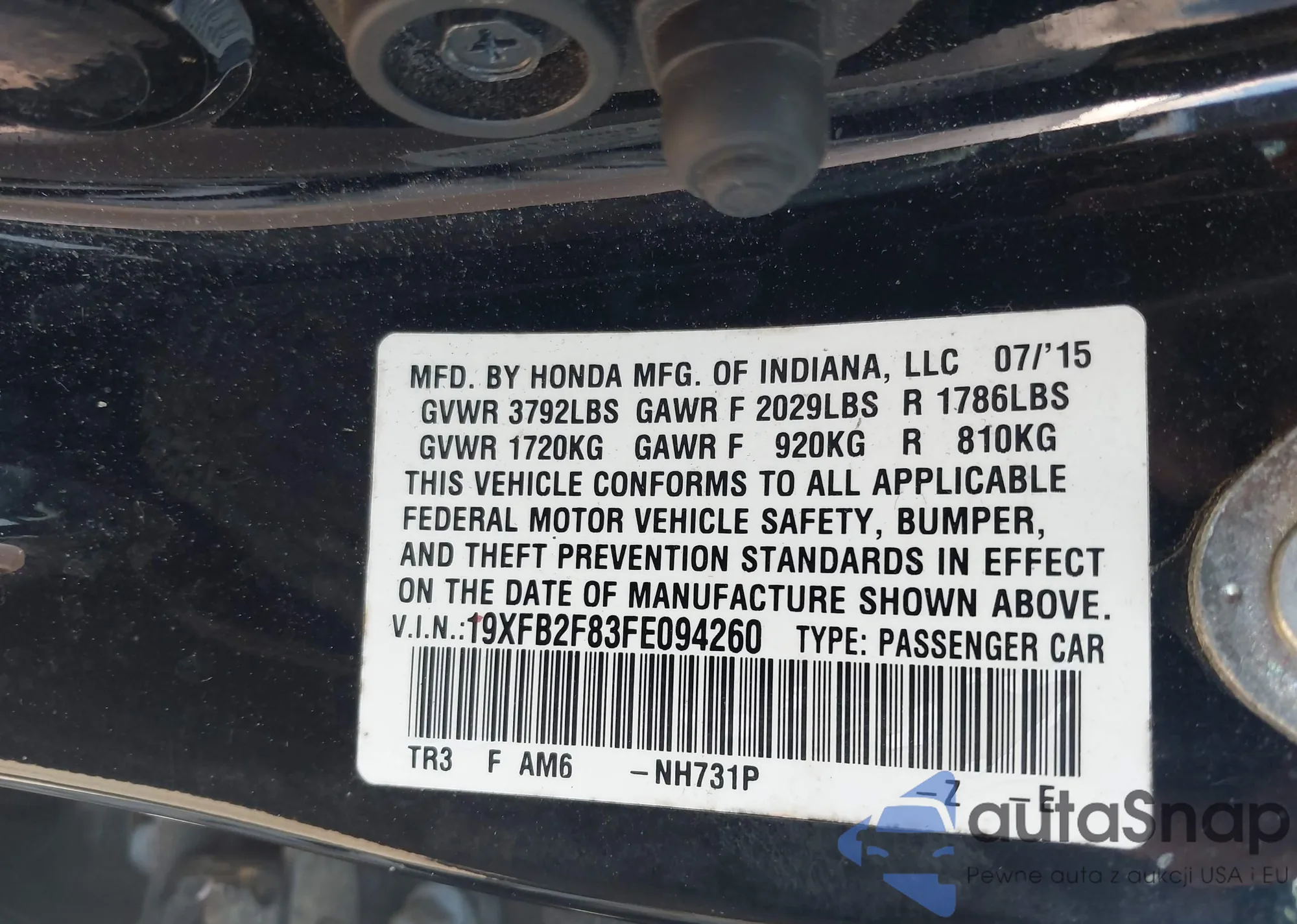 • VIN 19XFB2F83FE094260