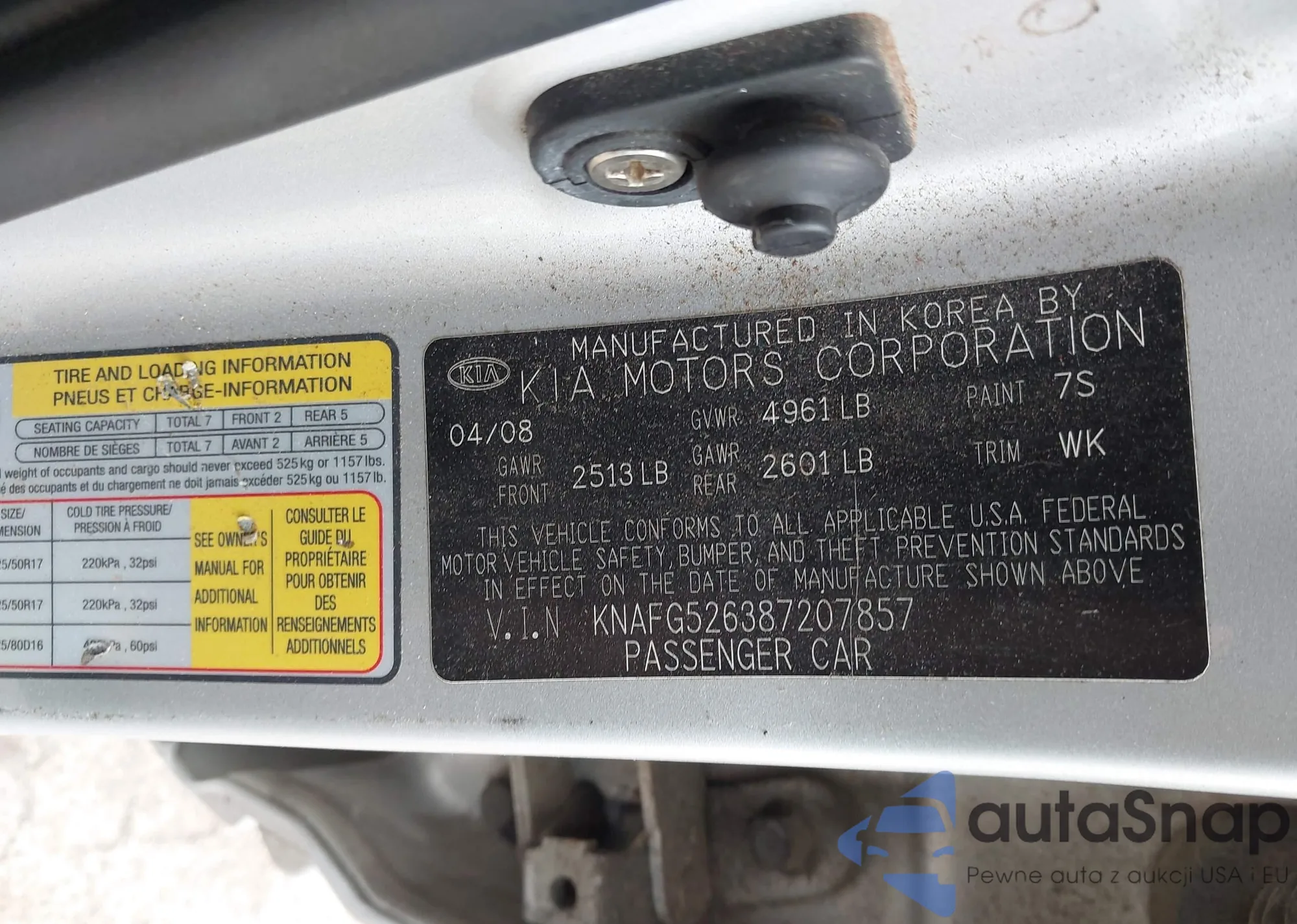 • VIN KNAFG526387207857