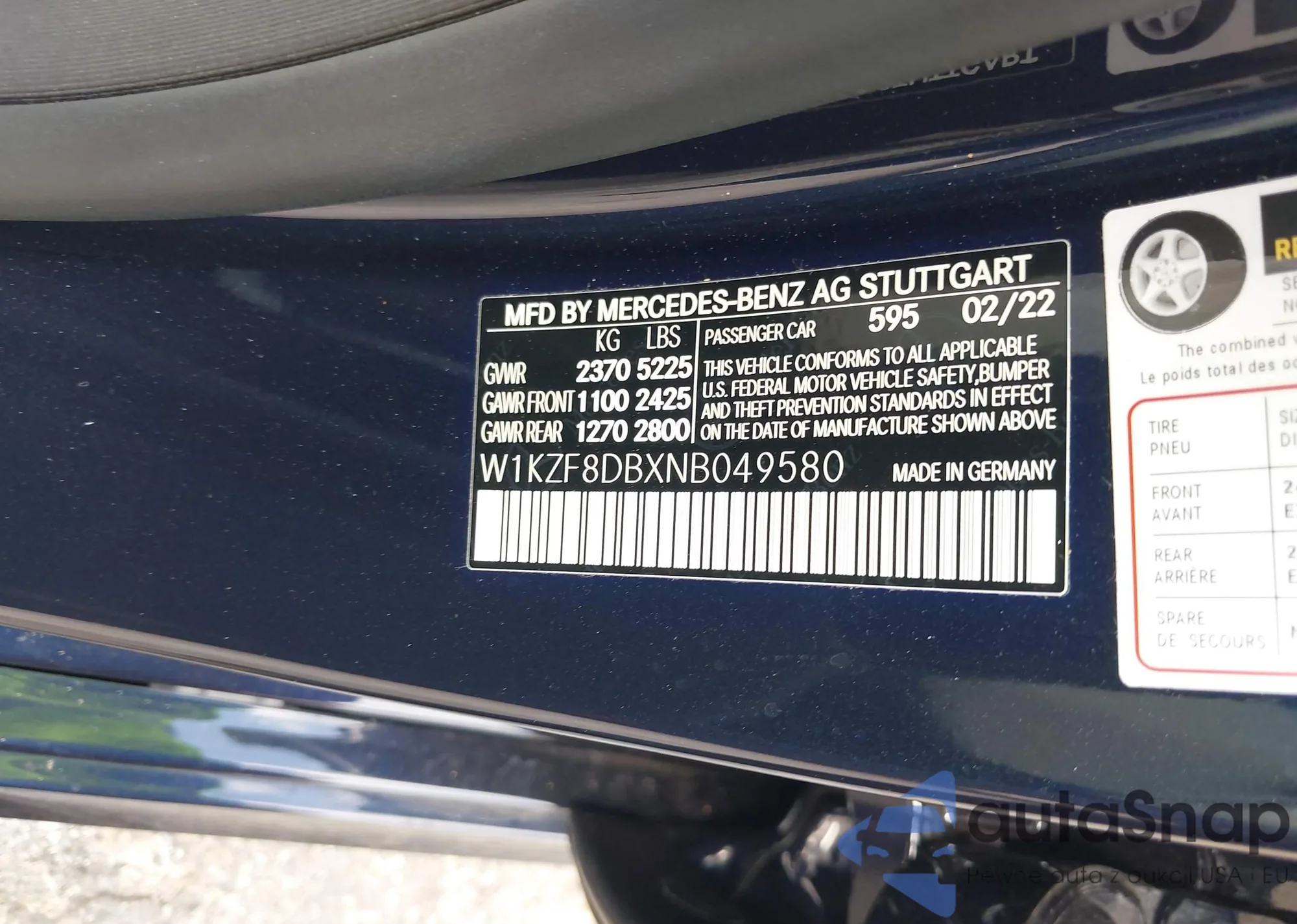 LOT: 42102354 VIN: W1KZF8DBXNB049580