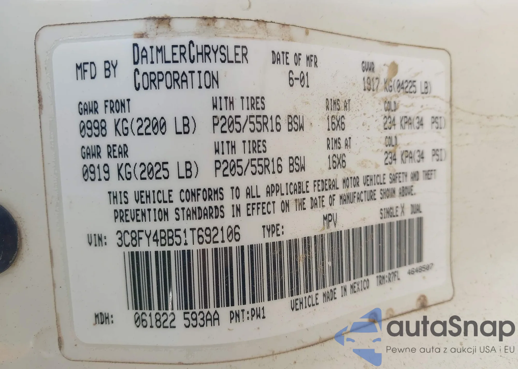 LOT: 42113789 VIN: 3C8FY4BB51T692106