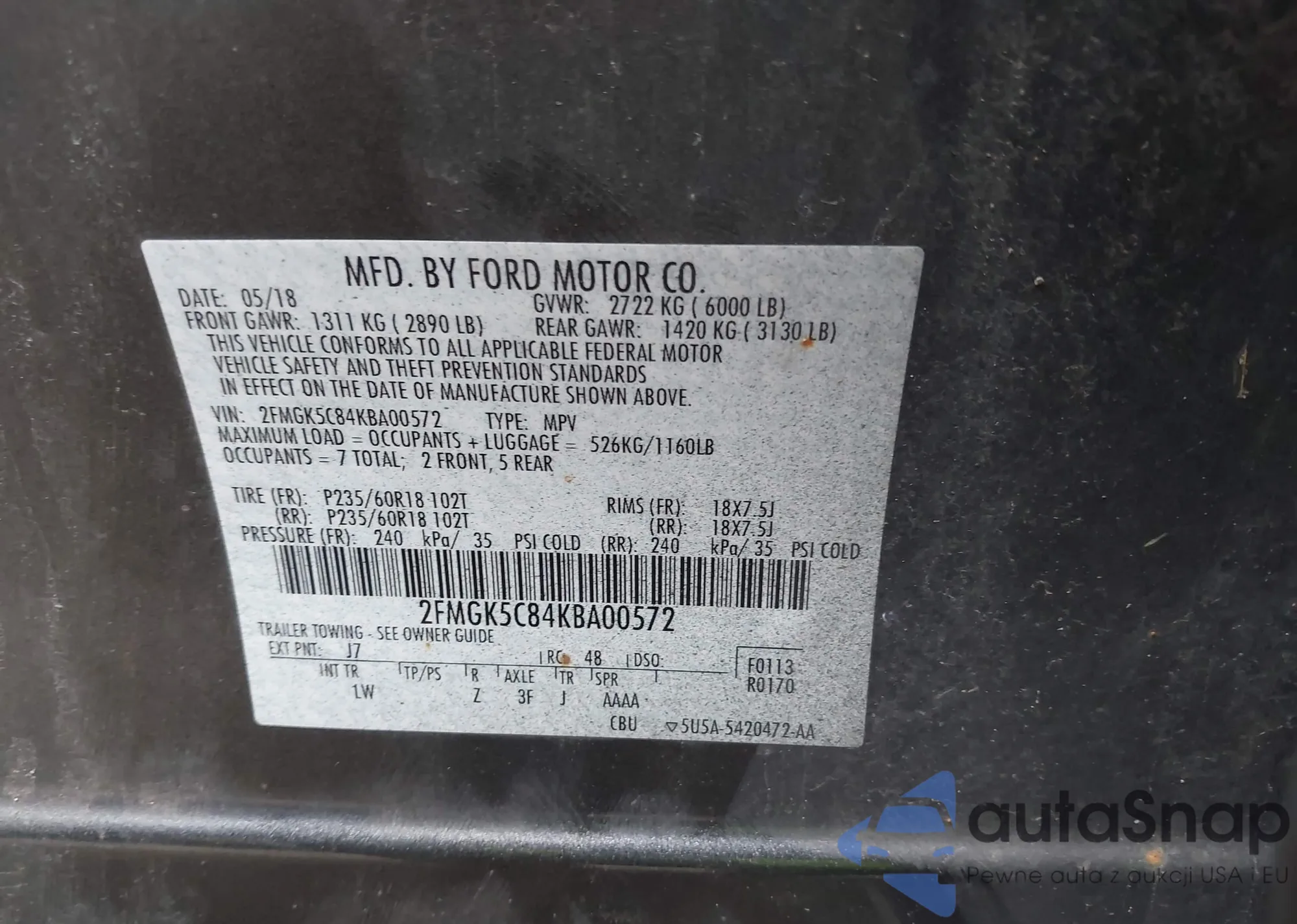• VIN 2FMGK5C84KBA00572