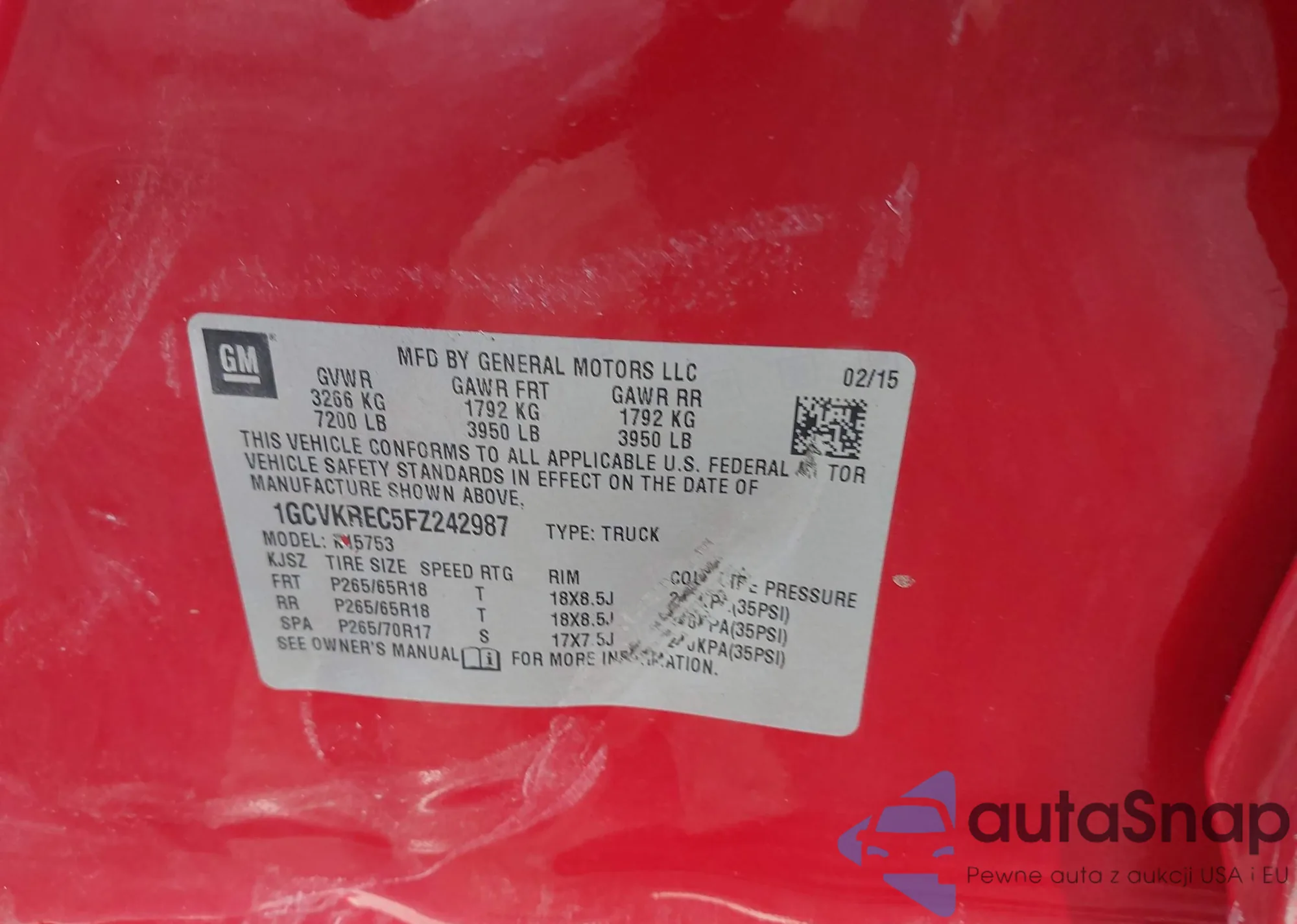 LOT: 42139842 VIN: 1GCVKREC5FZ242987