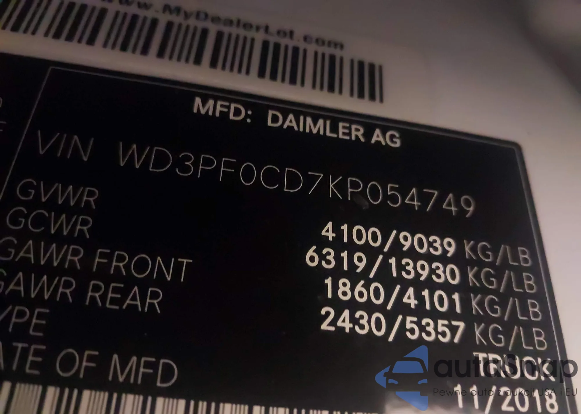 LOT: 42061954 VIN: WD3PF0CD7KP054749