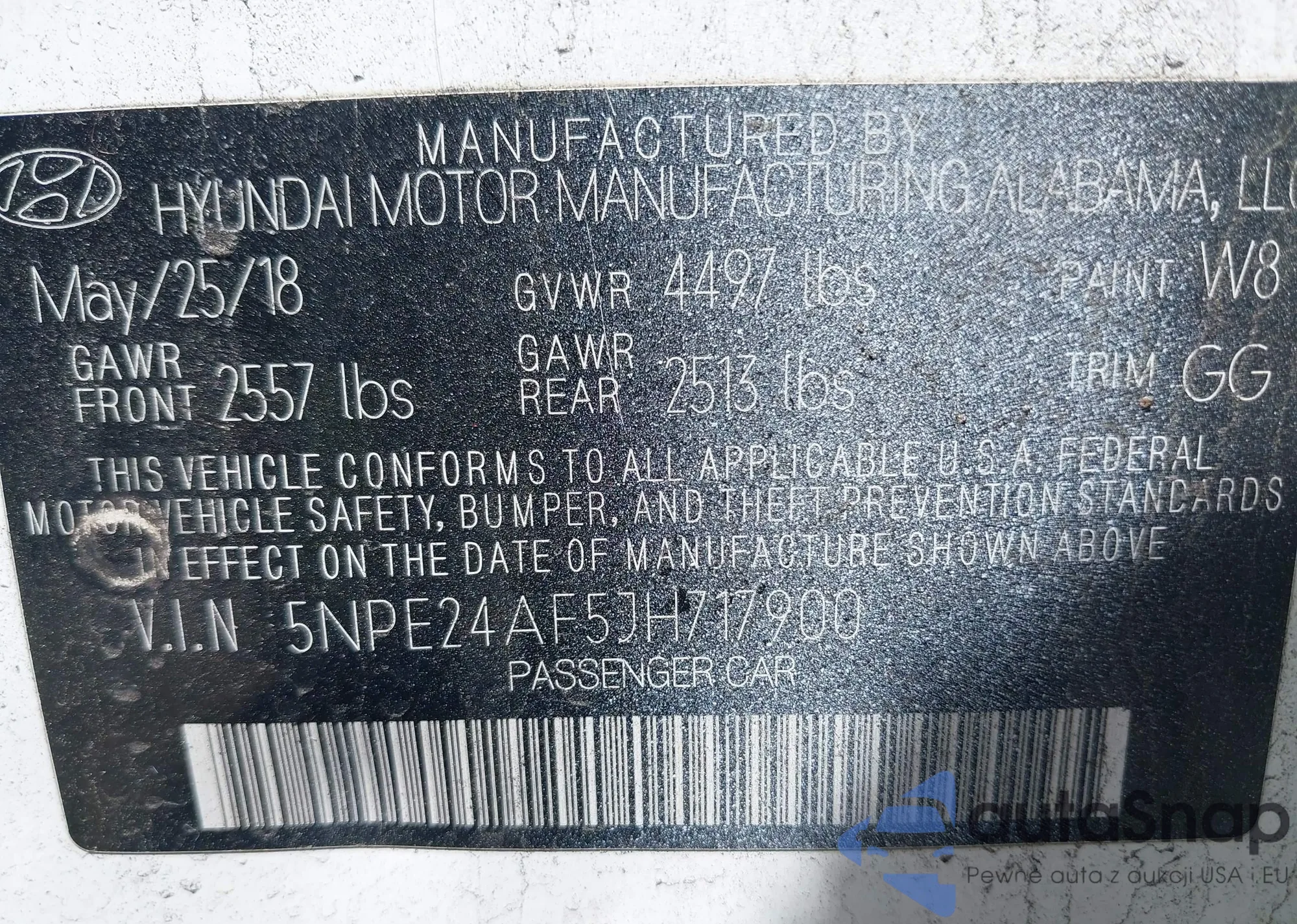 • VIN 5NPE24AF5JH717900